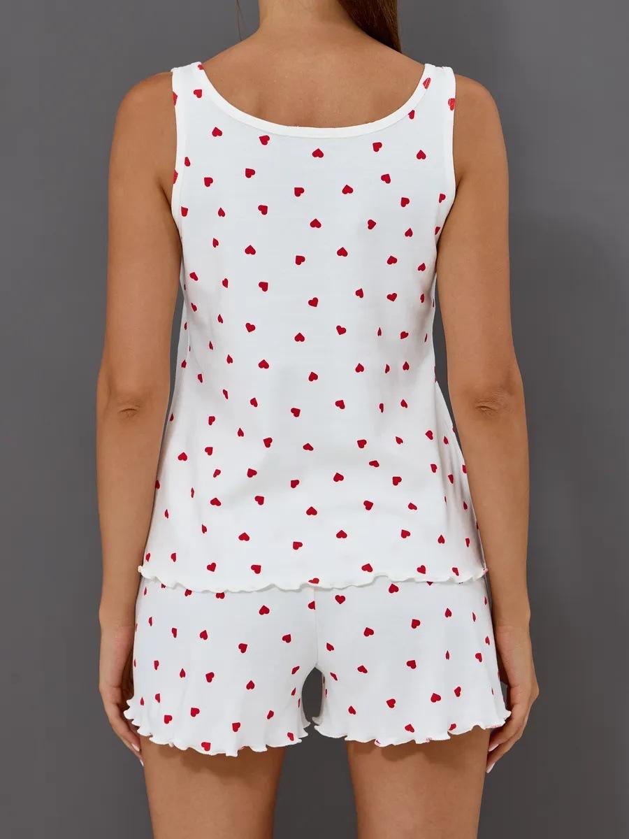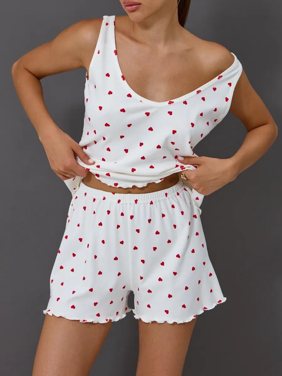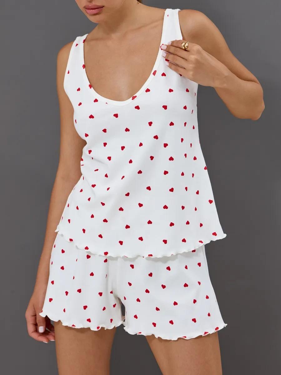 Conjunto de Verão Transfronteiriço Estilo Comércio Exterior Europeu e Americano Top Regata Sexy Feminino Estampa de Coração Top Shorts Conjunto de Duas Peças Roupa de Casa