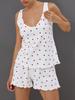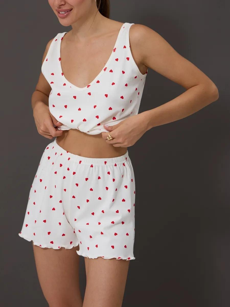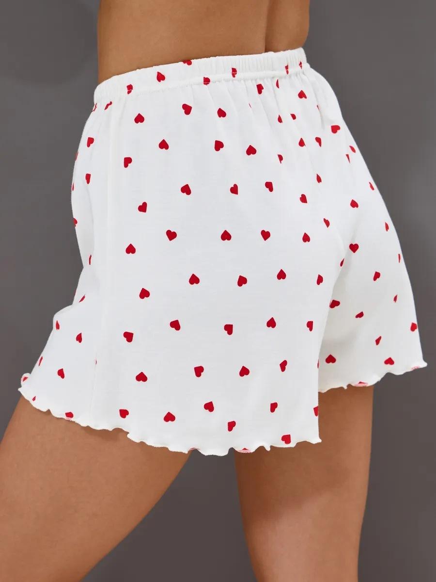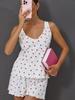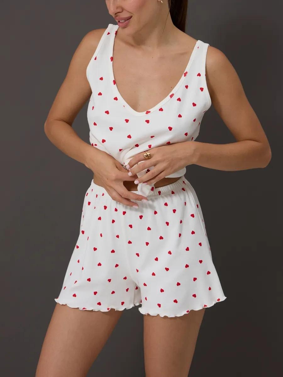 Conjunto de Verão Transfronteiriço Estilo Comércio Exterior Europeu e Americano Top Regata Sexy Feminino Estampa de Coração Top Shorts Conjunto de Duas Peças Roupa de Casa