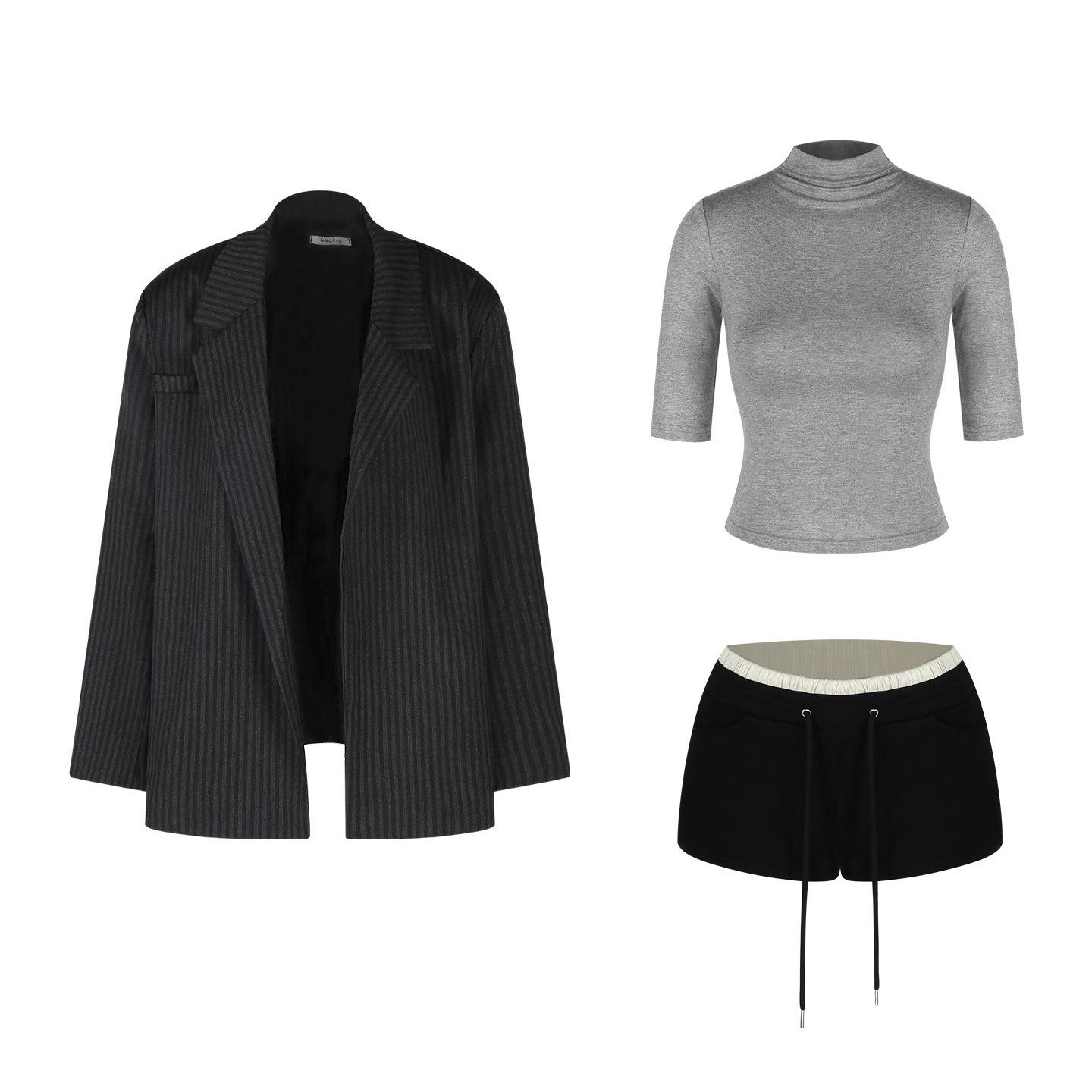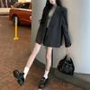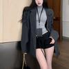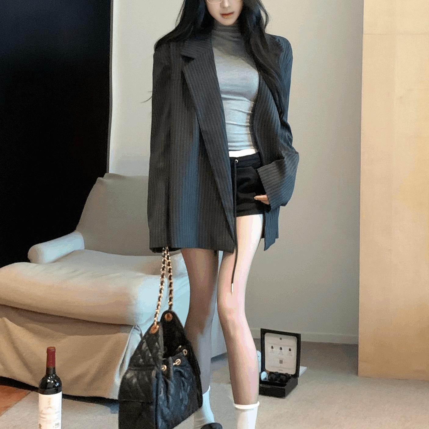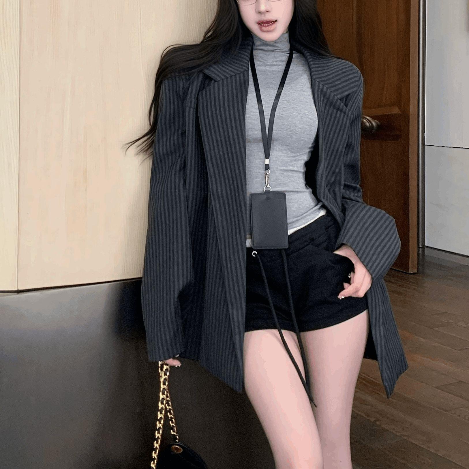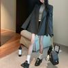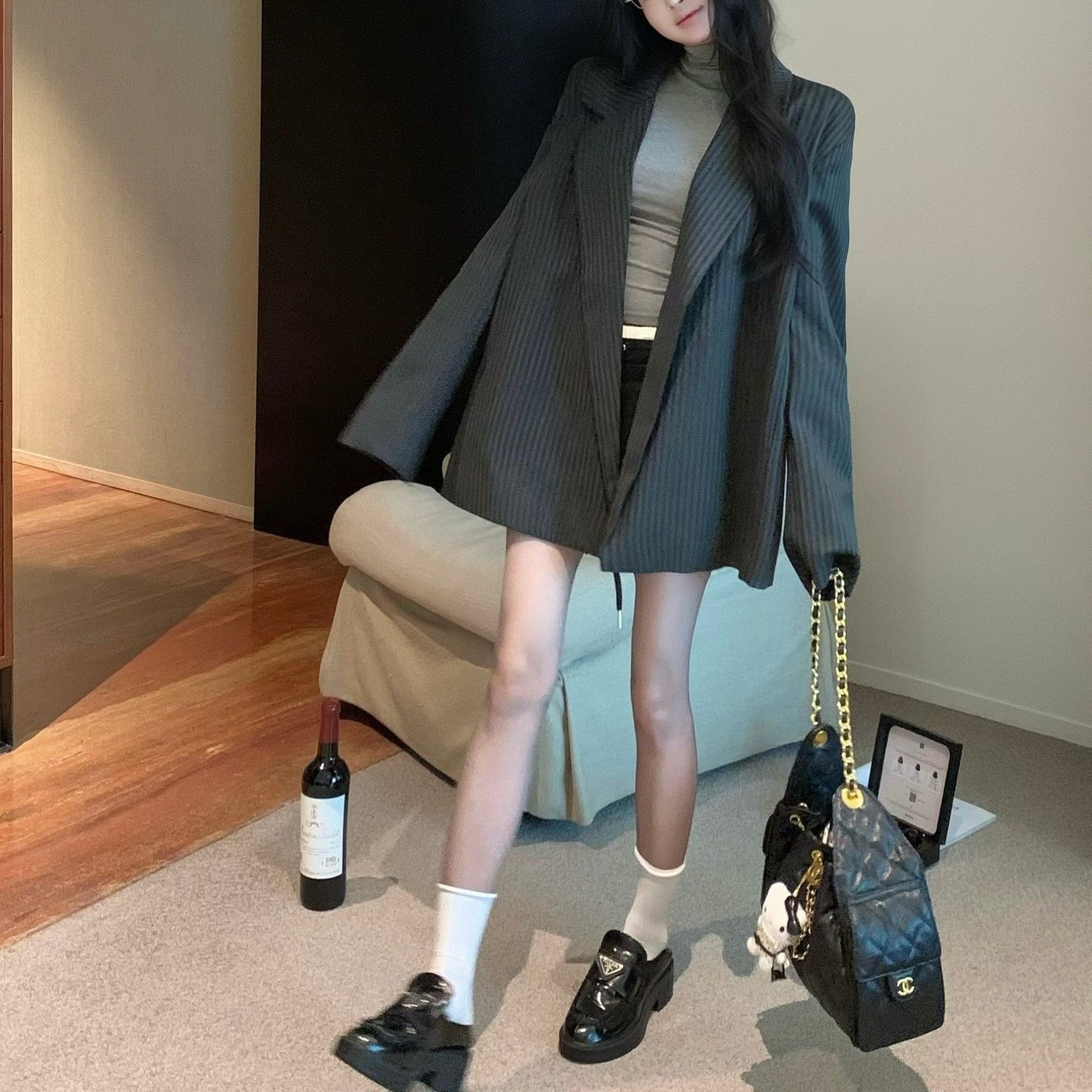 Jaqueta de Terno Listrada Estilo Coreano Feminina Outono Vintage Manga Longa Blazer Solto Moda Temperamento Cardigan Top