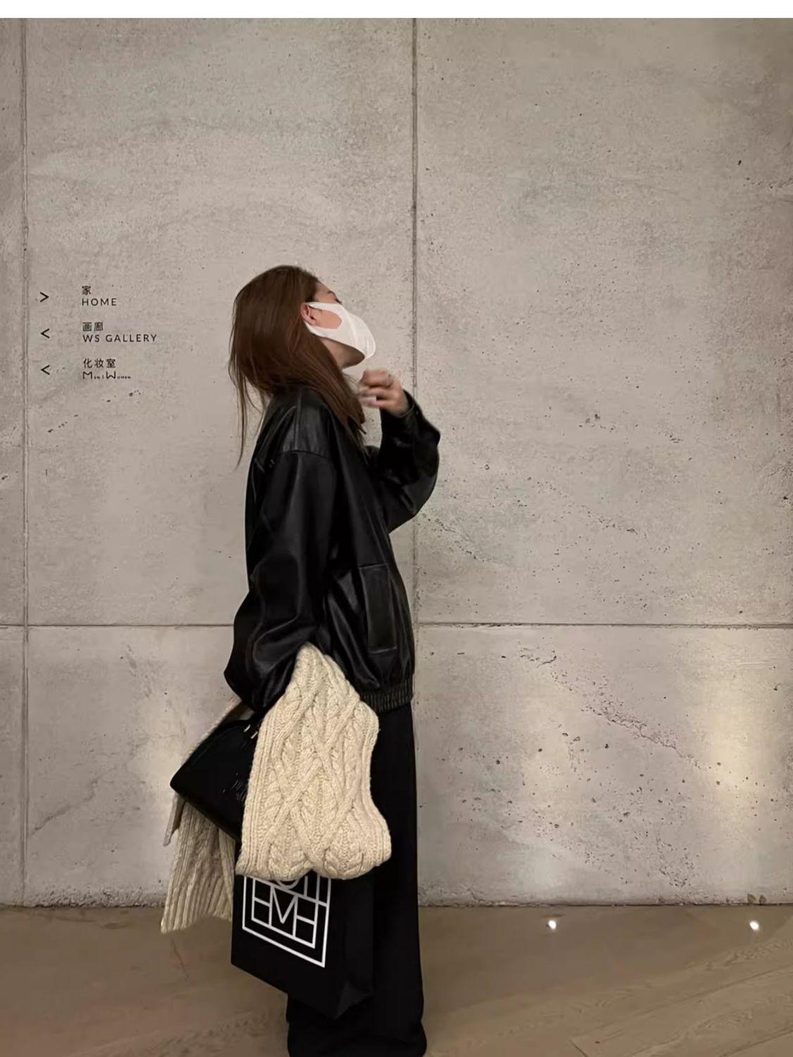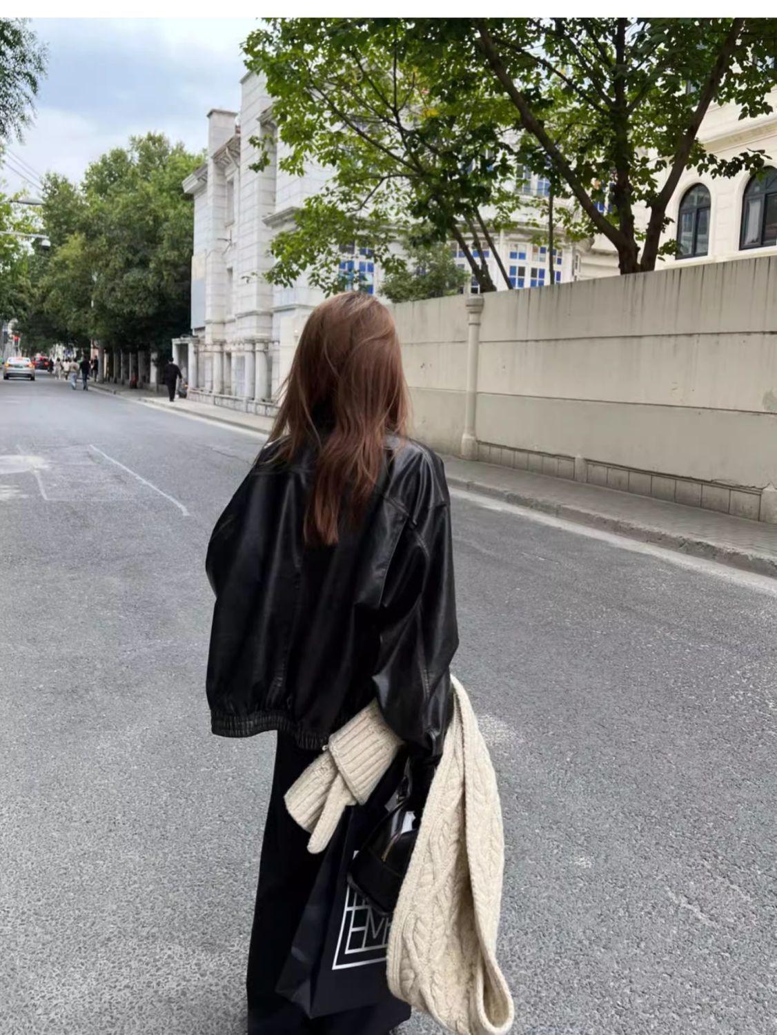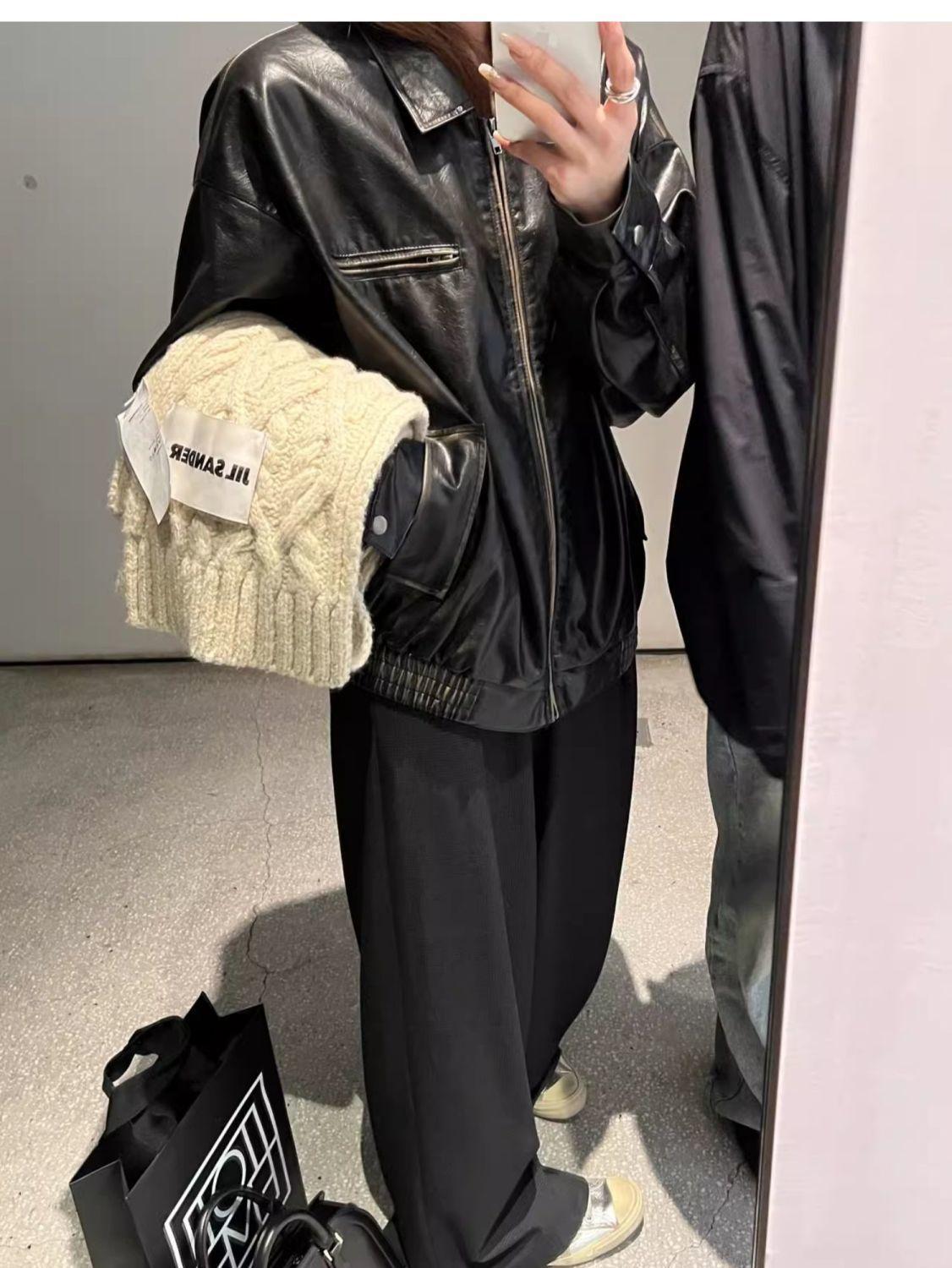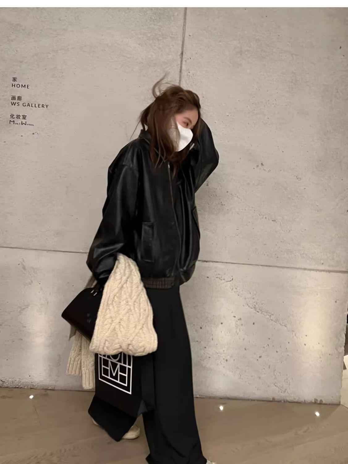 Jaqueta de couro preta minimalista retrô de manga comprida para mulheres, novo estilo de outono 2025, estilo motociclista, roupa exterior americana de PU