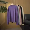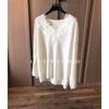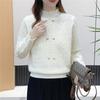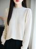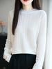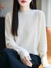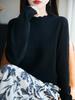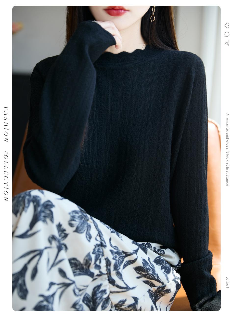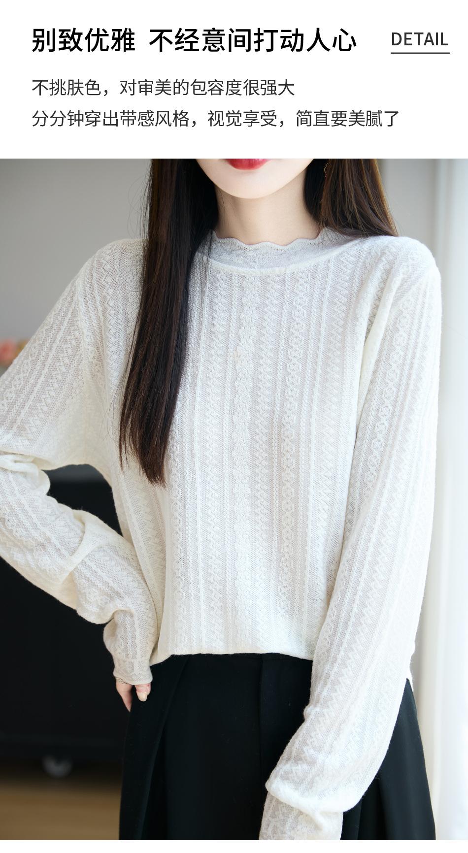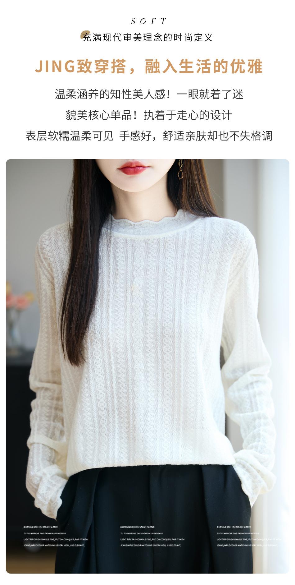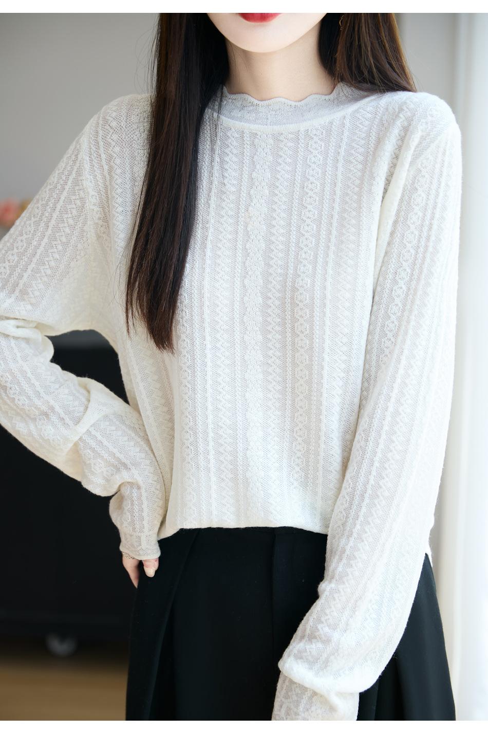 Suéter Feminino de Lã Fina com Renda e Gola de Organza, Design de Borda Ondulada, Estilo Delicado, Tricotado, Outono Inverno, Roupa Interior