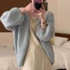 Camiseta básica de malha feminina primavera e outono cardigã fino casaco suéter 2025 novo estilo roupa exterior retrô top feminino para usar por baixo