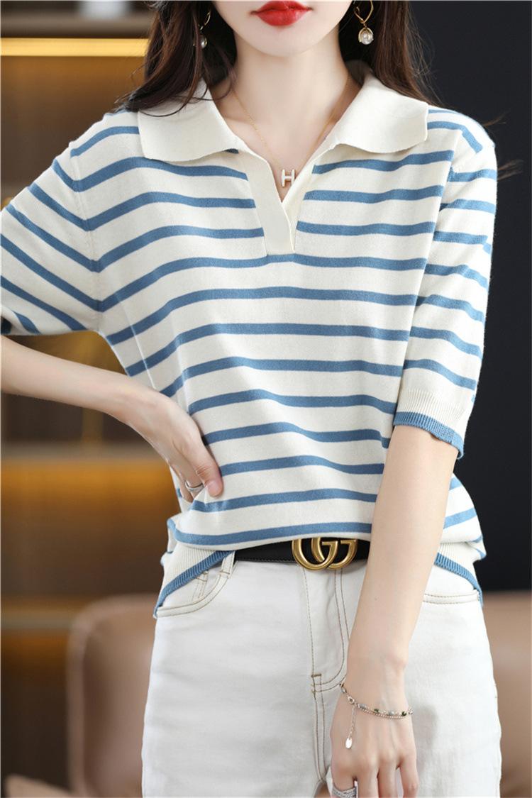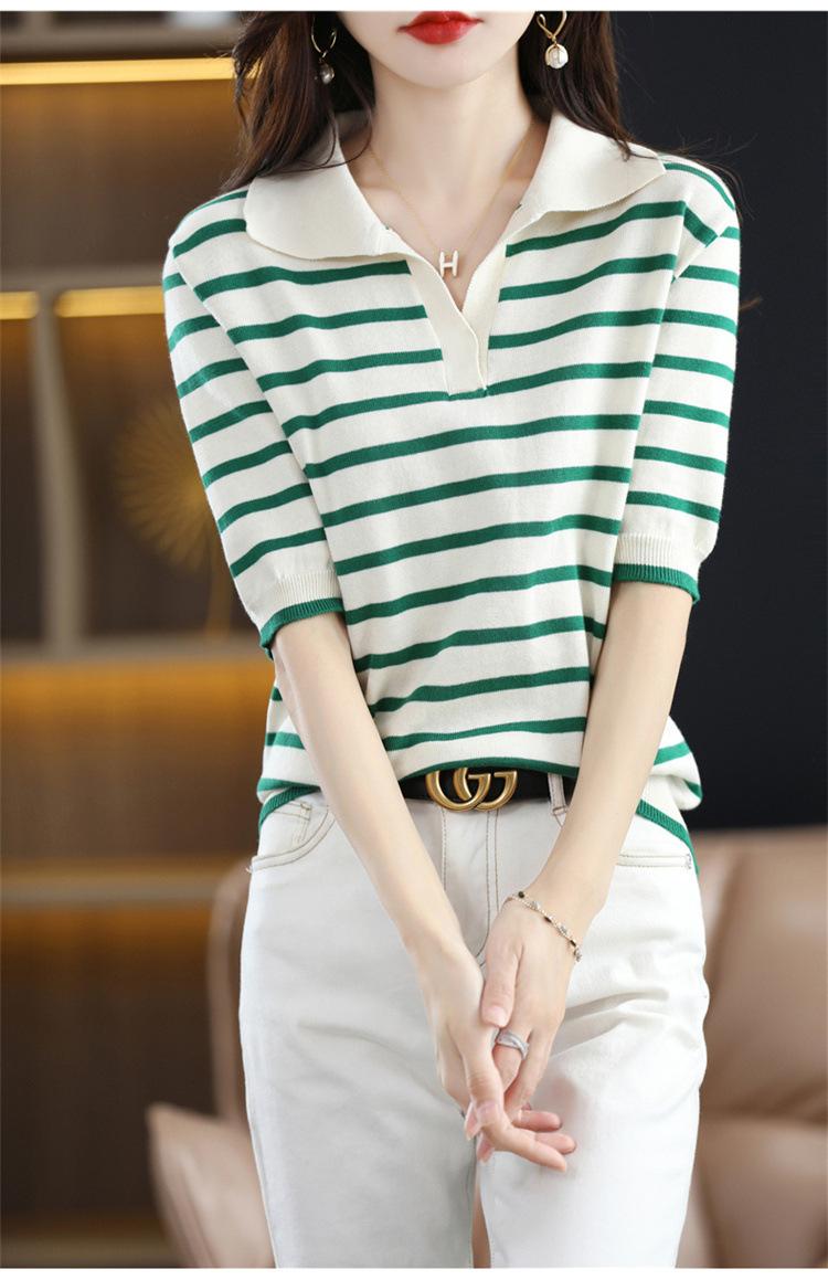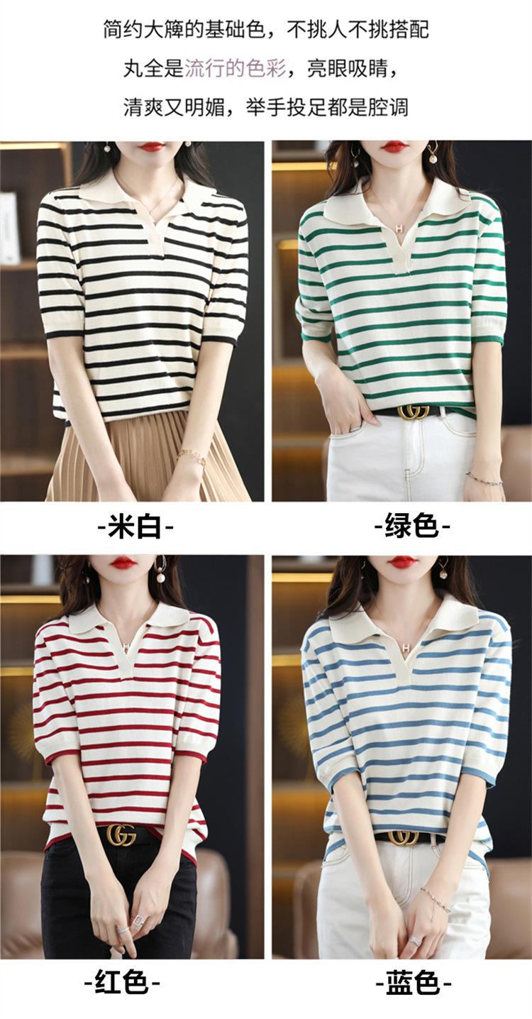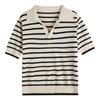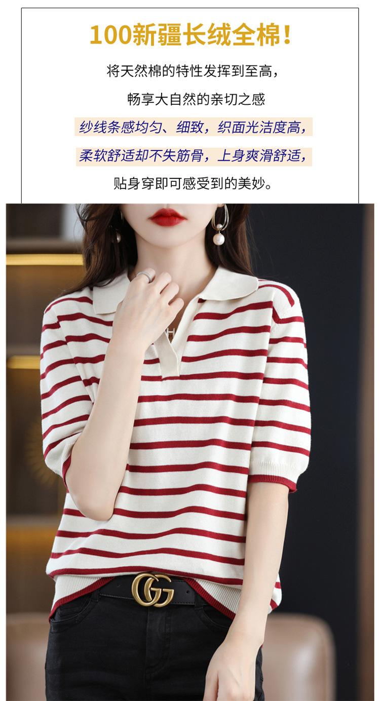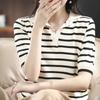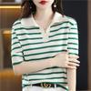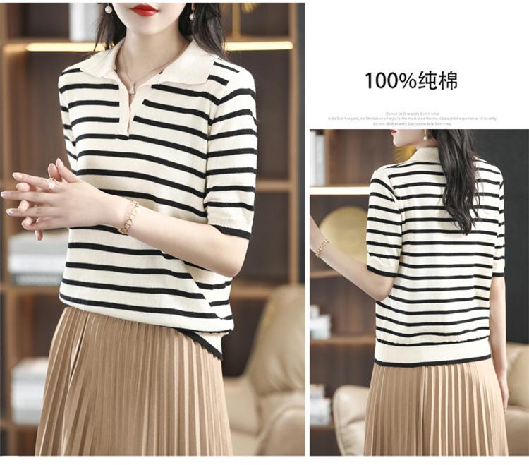 24 verão novo algodão POLO colar malha camisa feminina manga curta camiseta listrada cor de contraste elegante malha base camisa