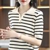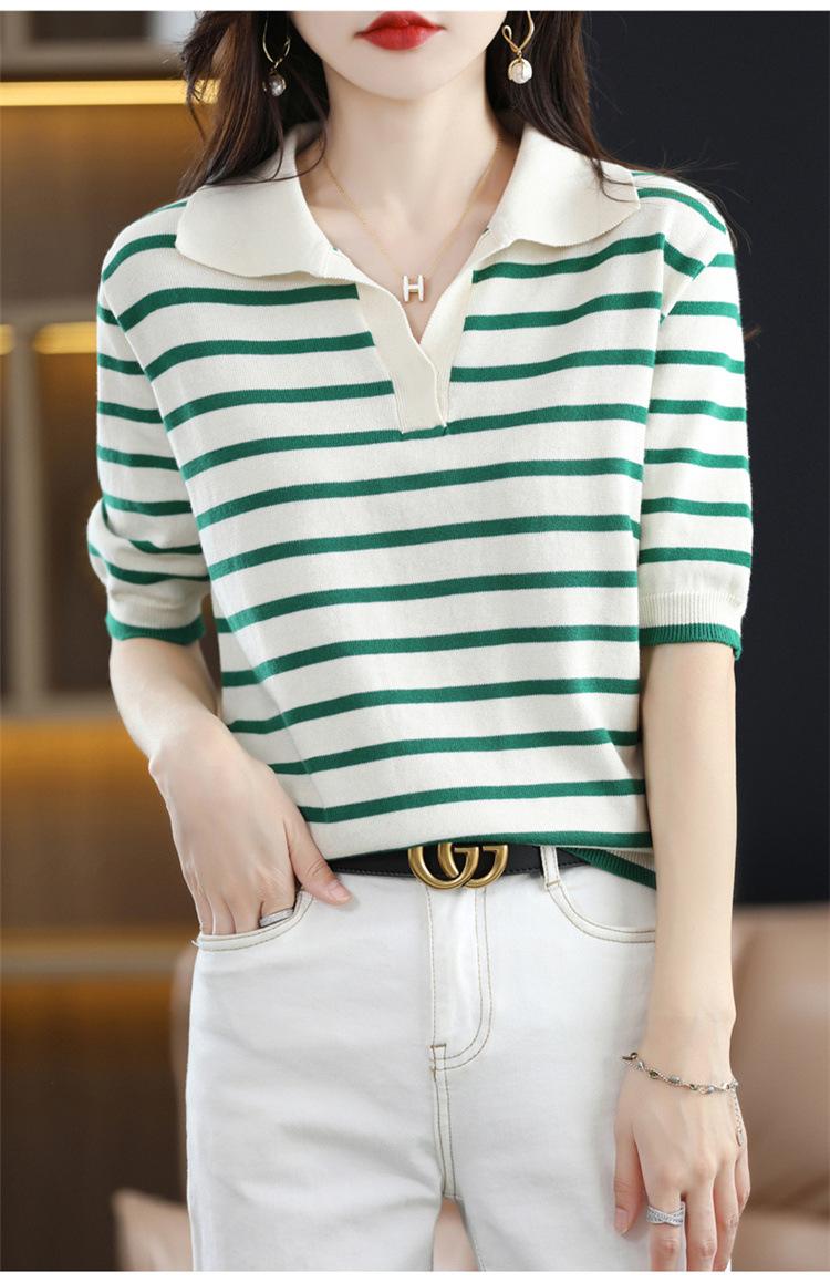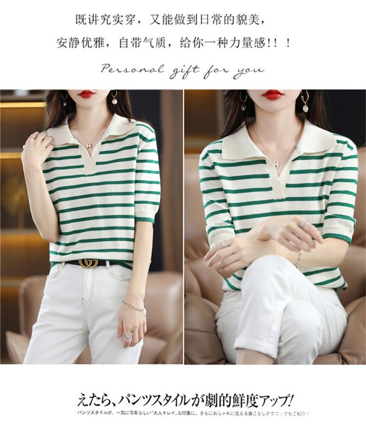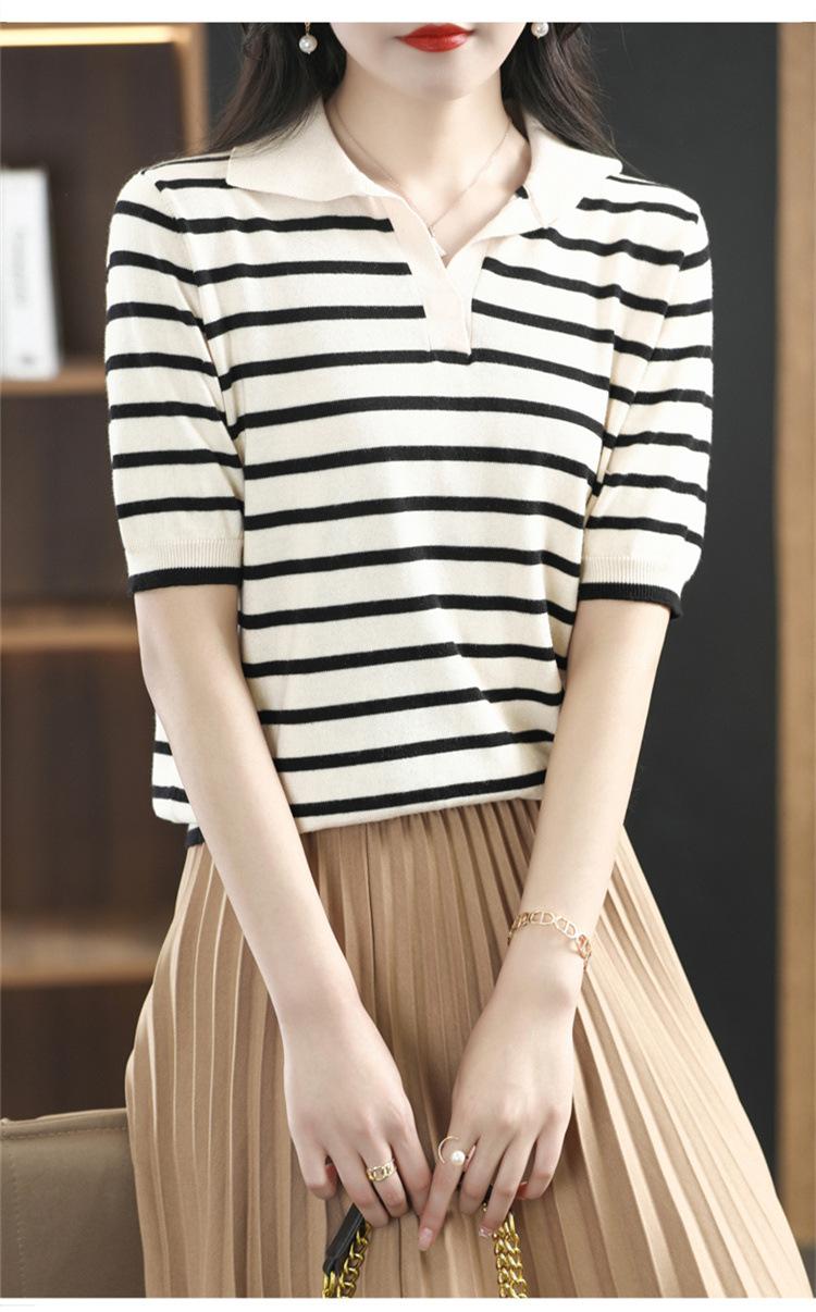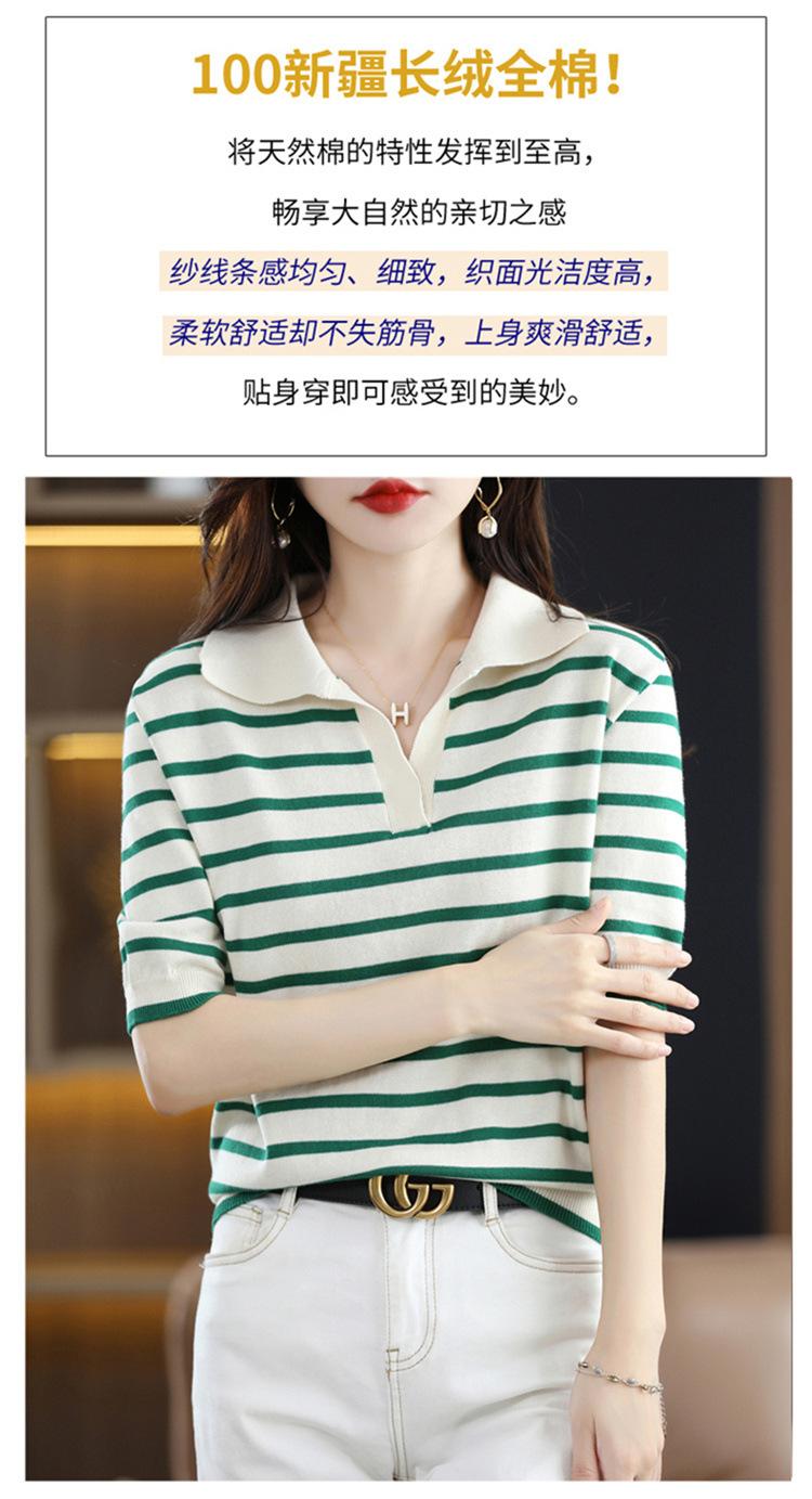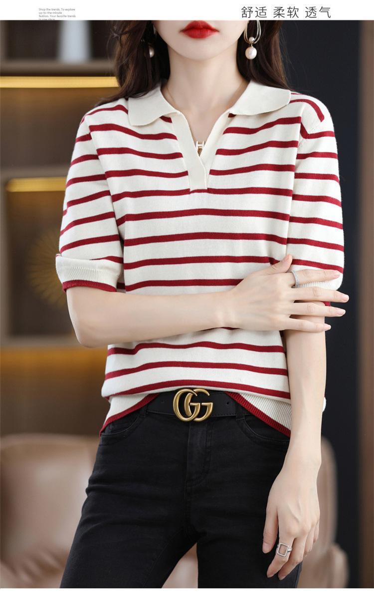 24 verão novo algodão POLO colar malha camisa feminina manga curta camiseta listrada cor de contraste elegante malha base camisa