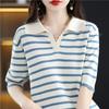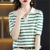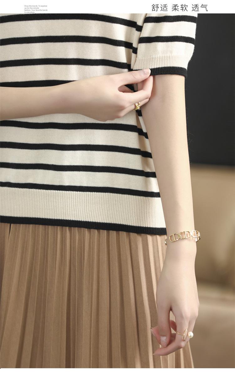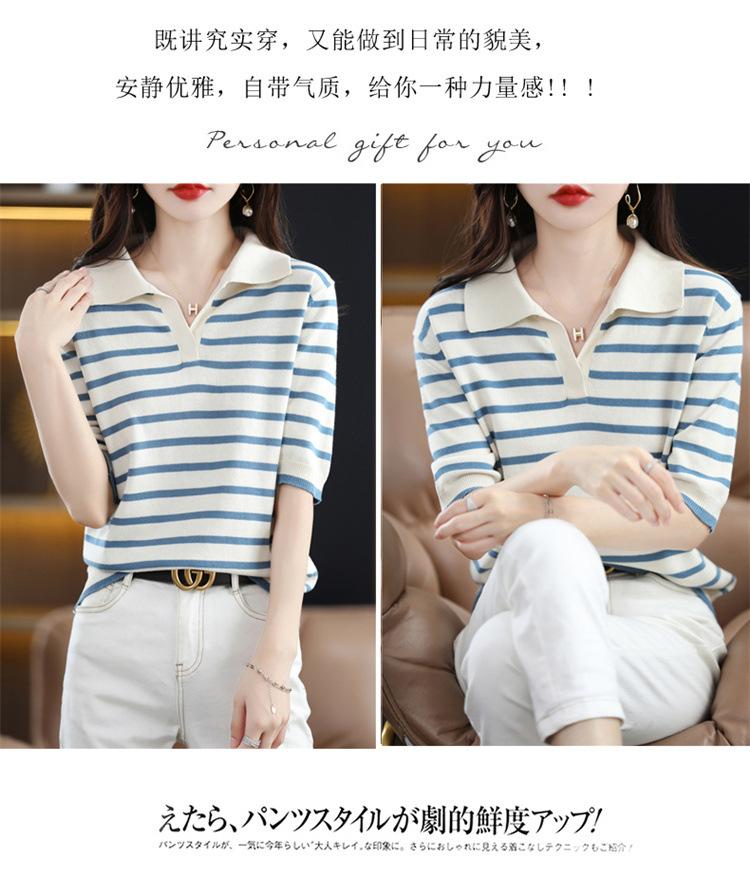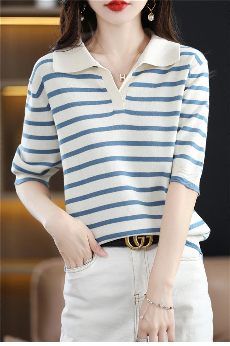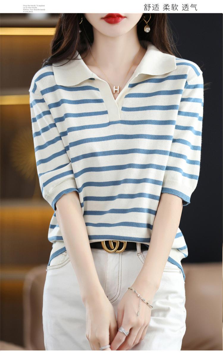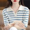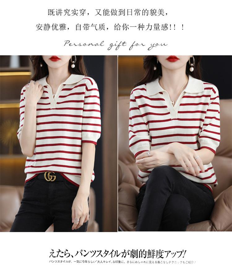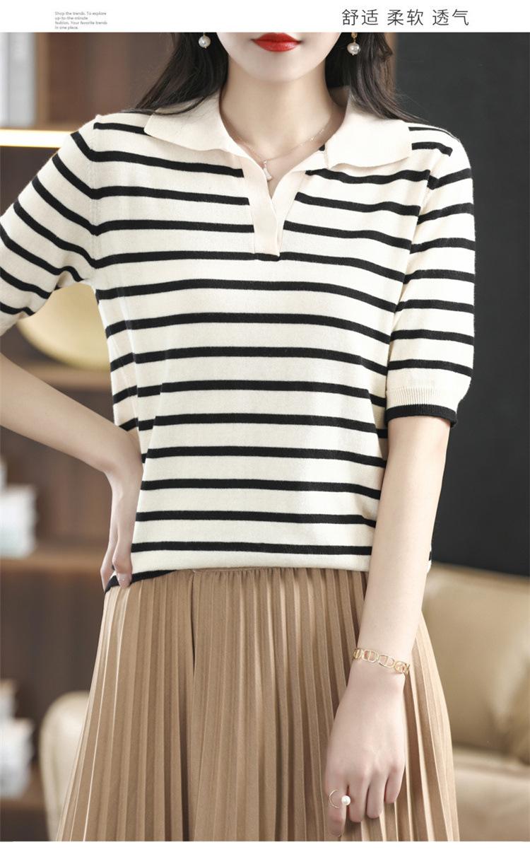 24 verão novo algodão POLO colar malha camisa feminina manga curta camiseta listrada cor de contraste elegante malha base camisa
