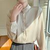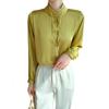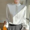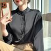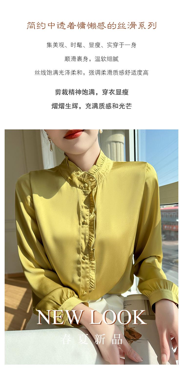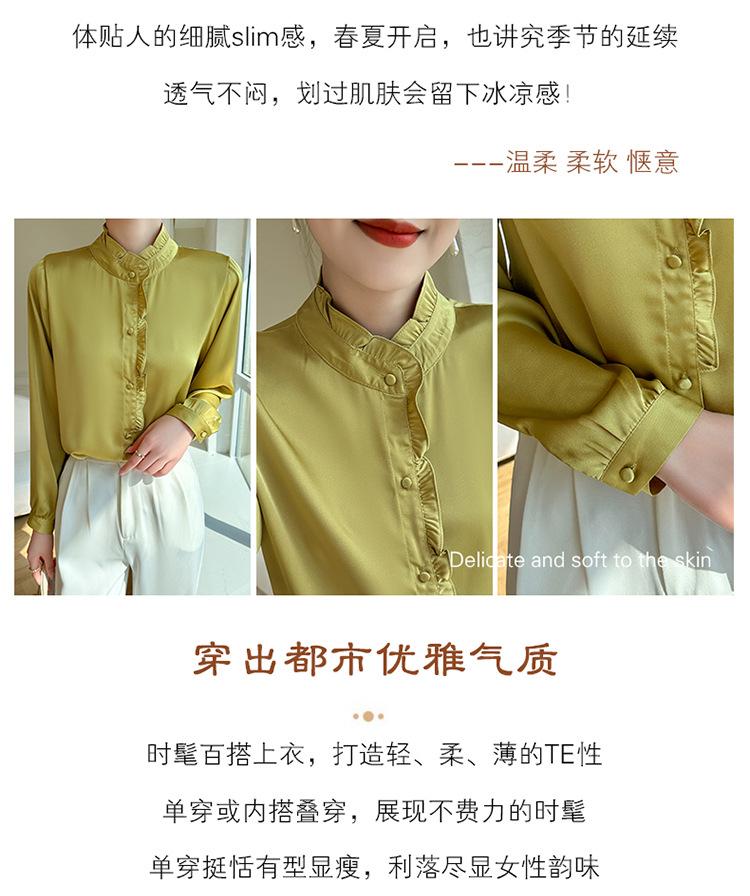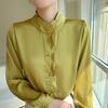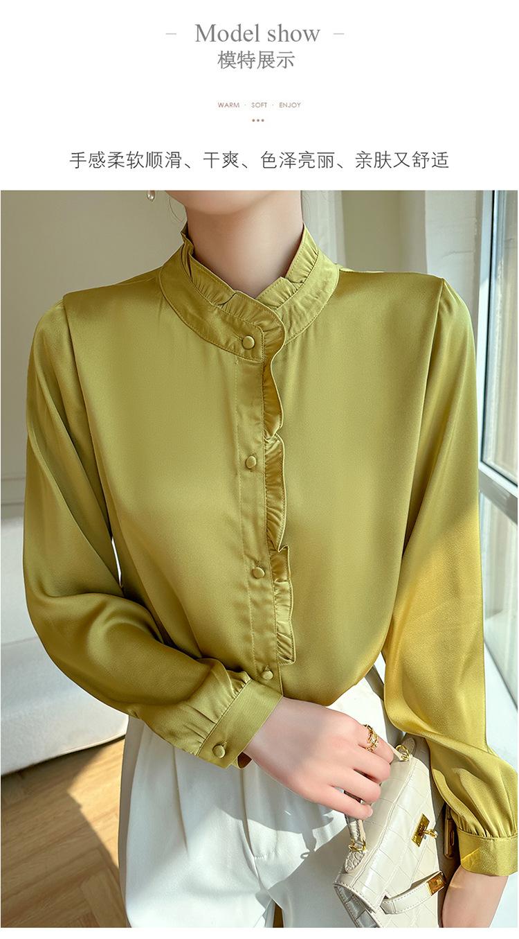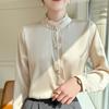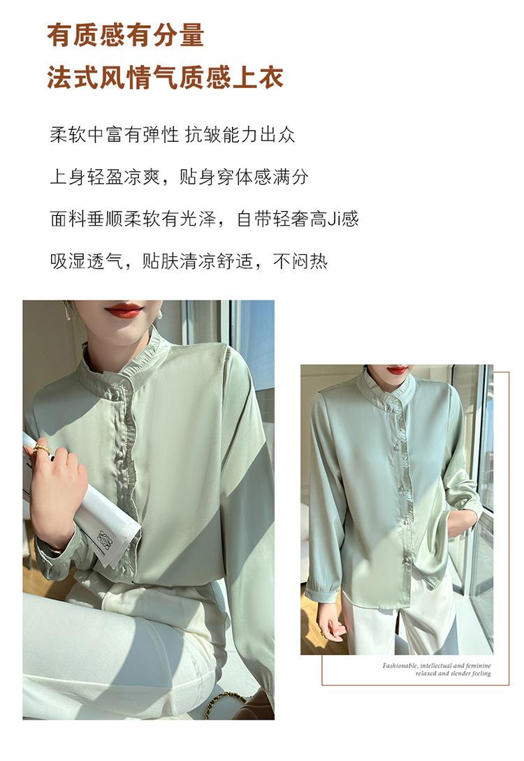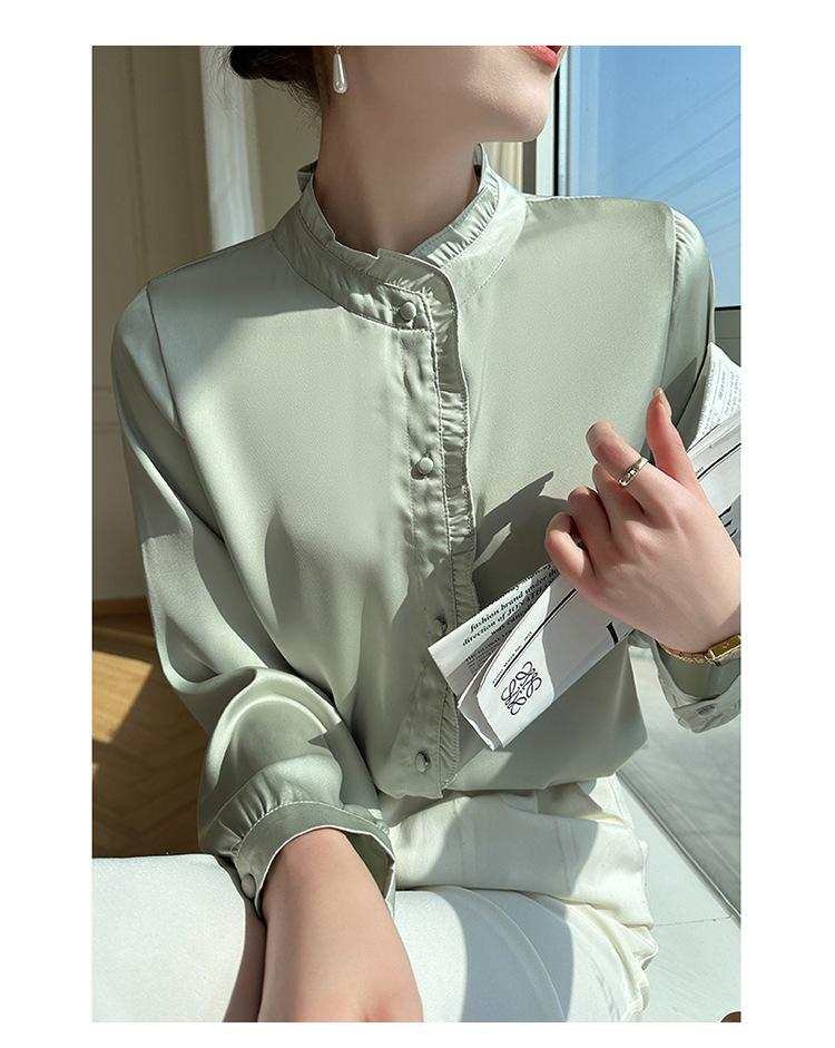Camisa Nova de Cetim Francês com Babados e Gola Alta para Mulheres, Cor Sólida, Blusa com Design Solto
