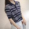 2025 Novo Verão Algodão Puro Tricô Gola Polo Camiseta de Manga Curta Feminina Cor Pura Pulôver com Botões Camiseta Básica