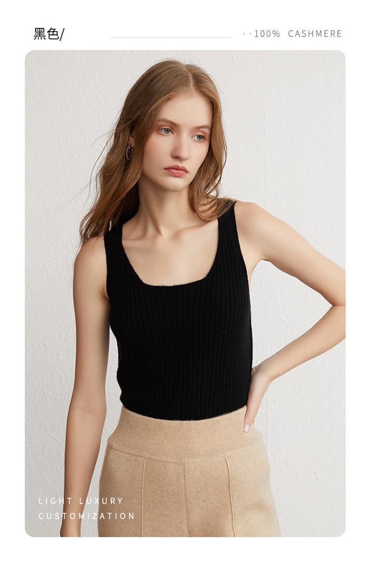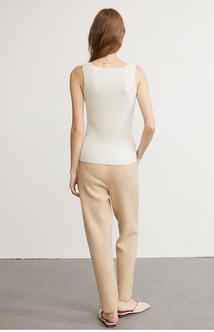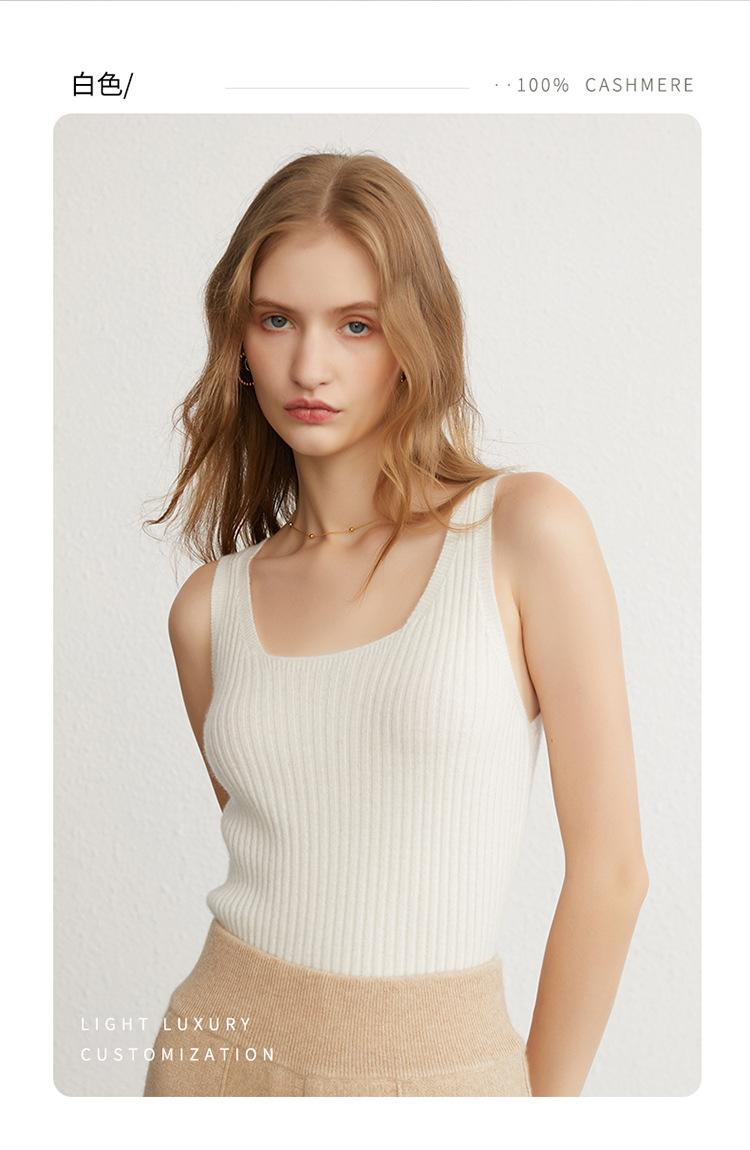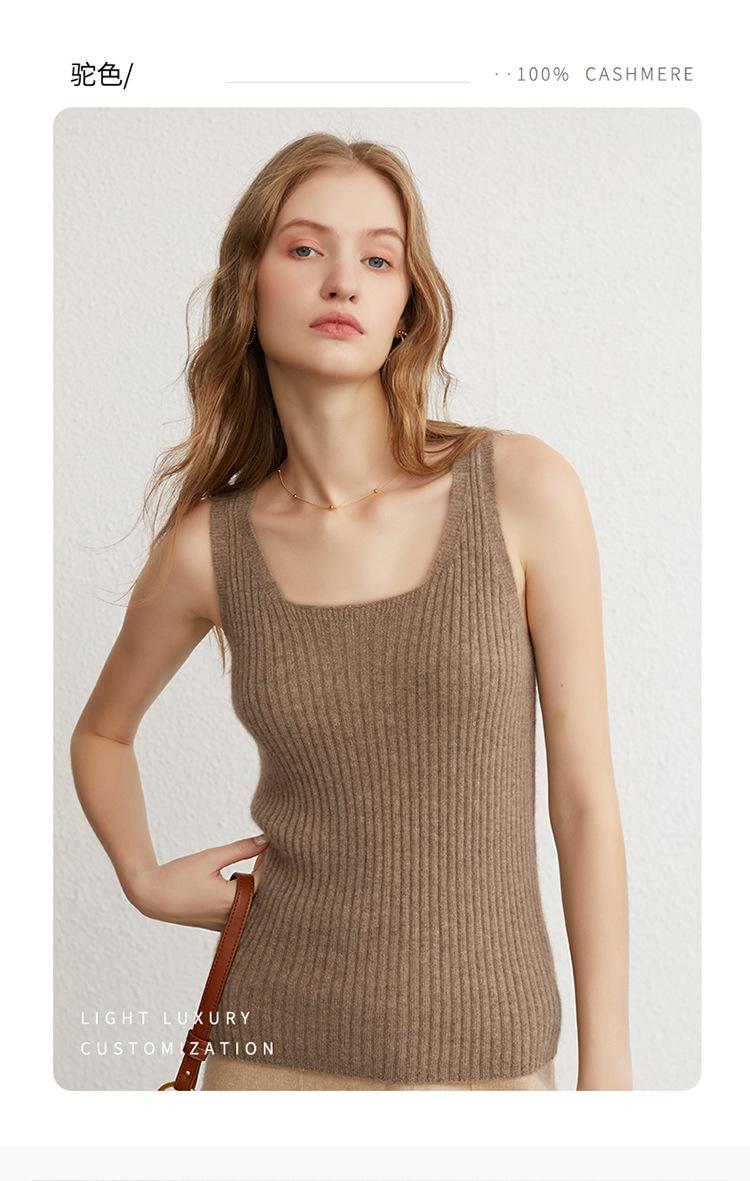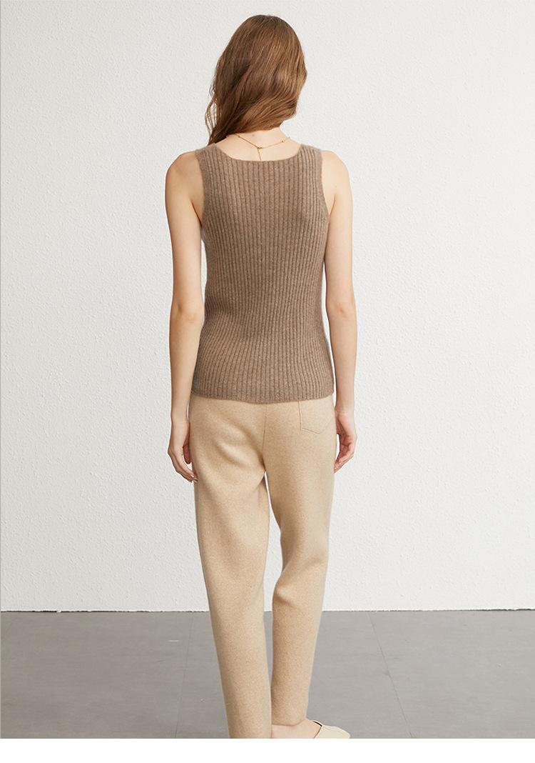 Camisola de Caxemira Feminina 100% Caxemira Pura Corte Simples e Ajustado Roupa Íntima Cor Sólida Decote U Pulôver Tricotado Colete Quente