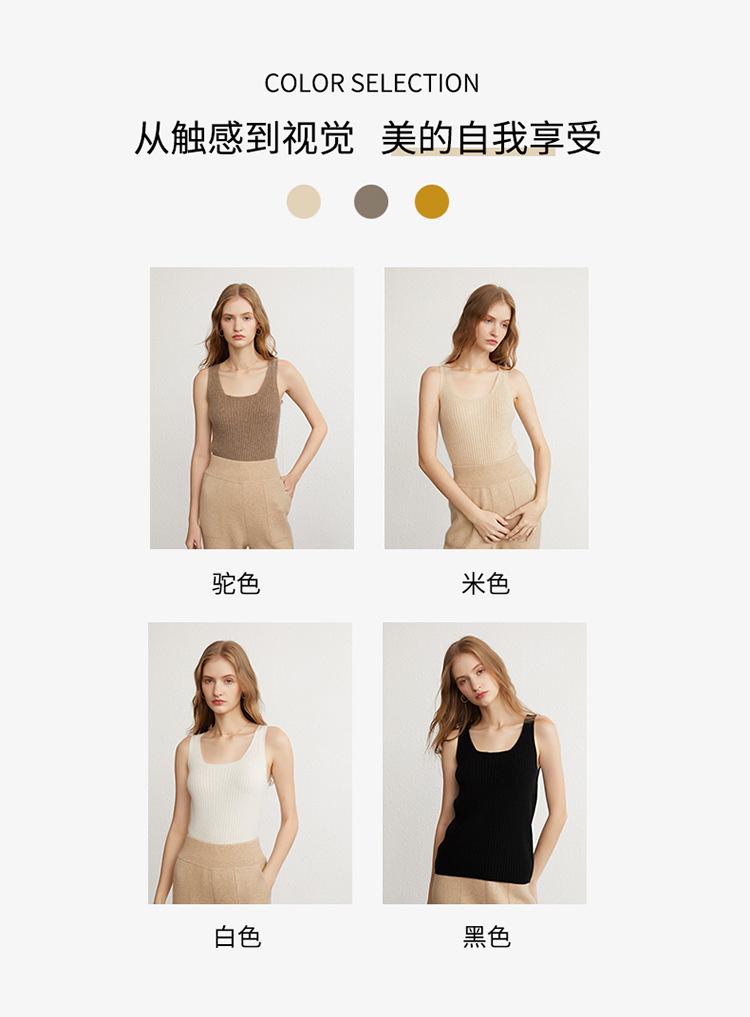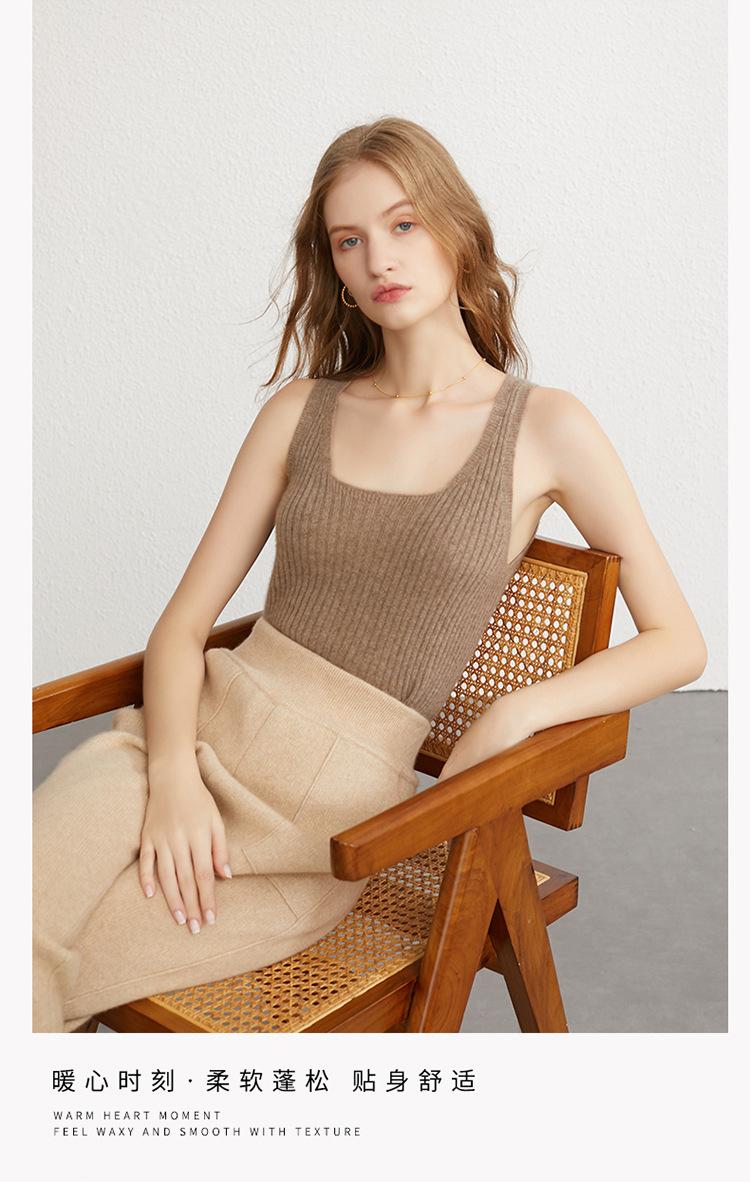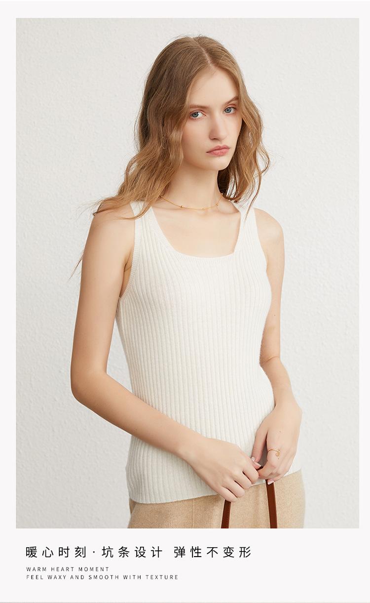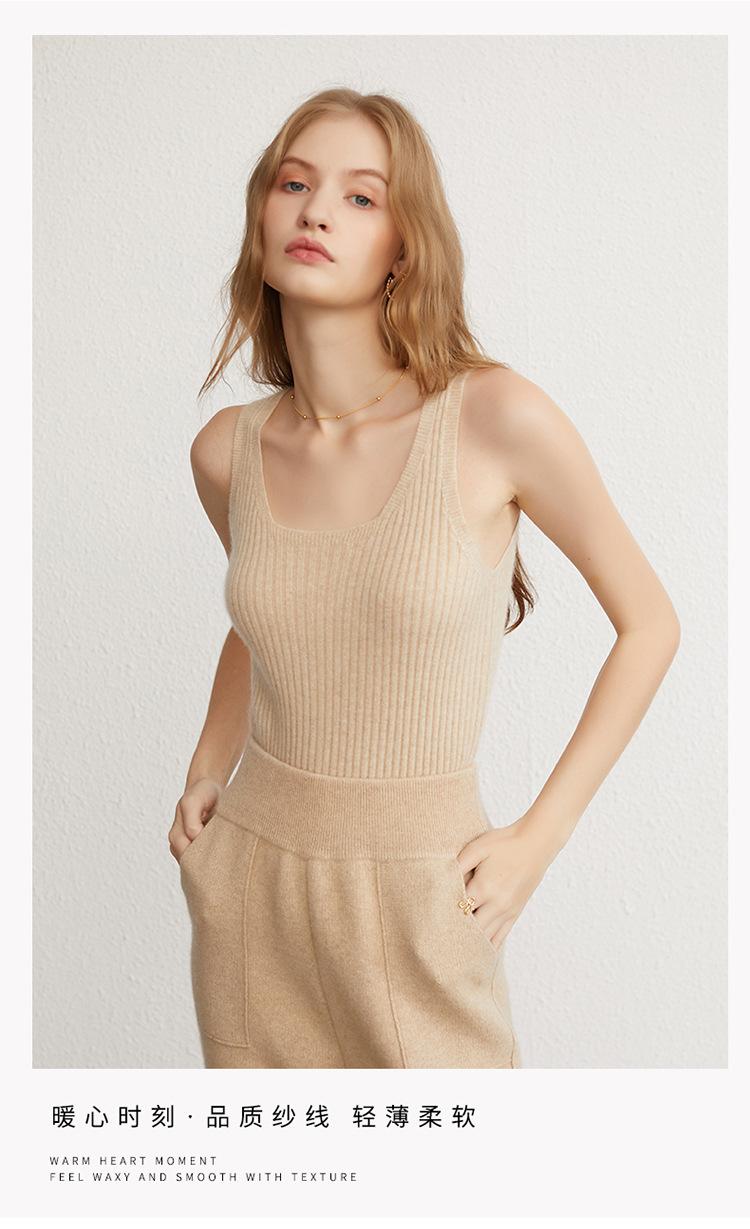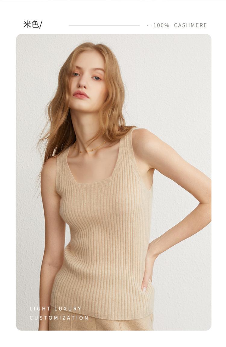 Camisola de Caxemira Feminina 100% Caxemira Pura Corte Simples e Ajustado Roupa Íntima Cor Sólida Decote U Pulôver Tricotado Colete Quente
