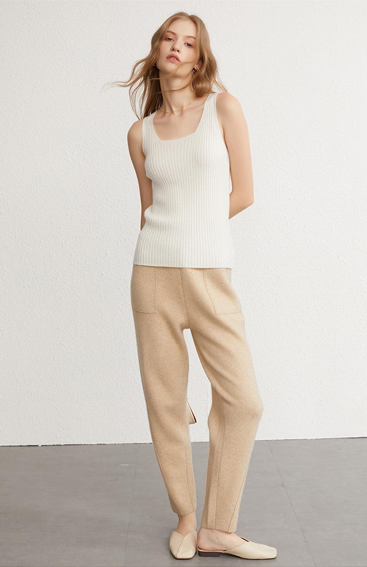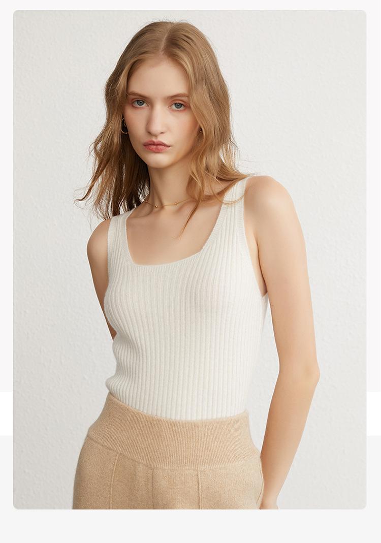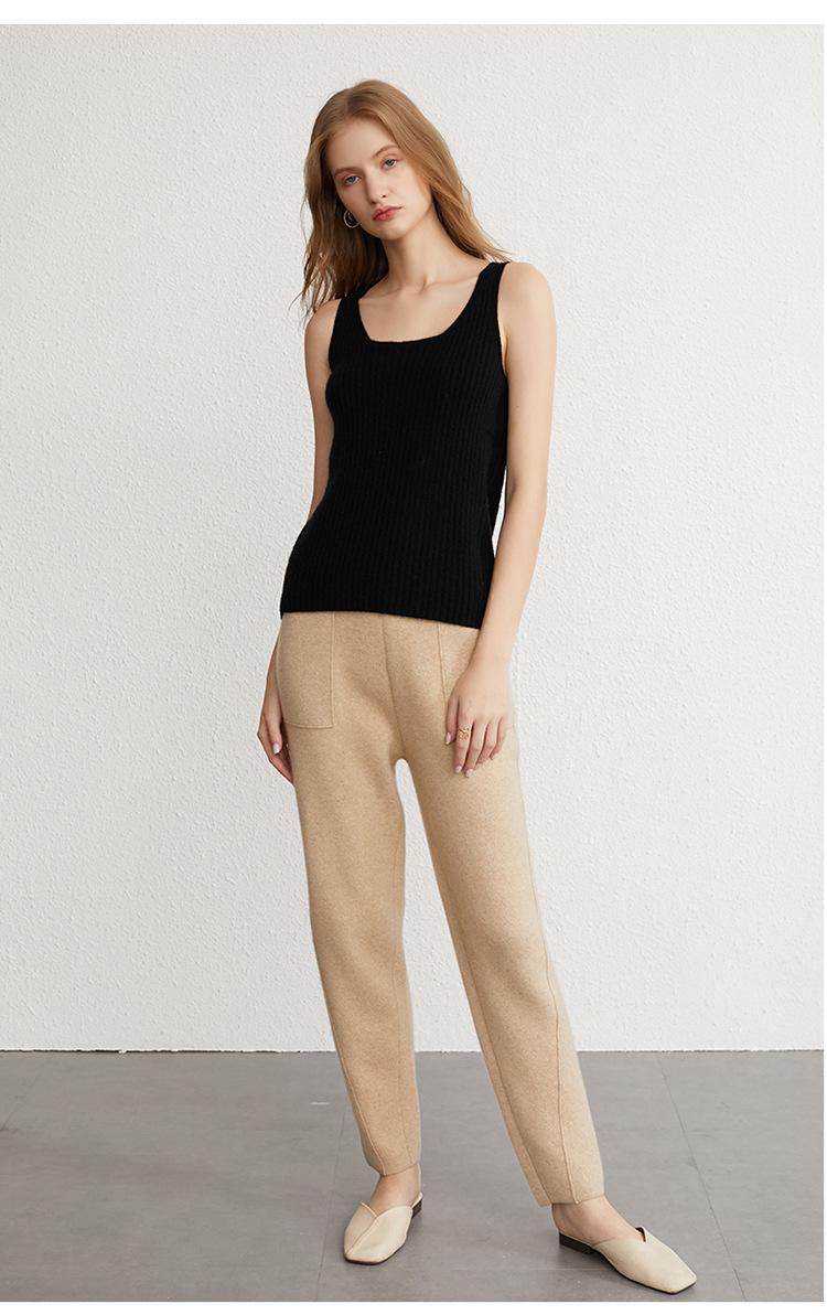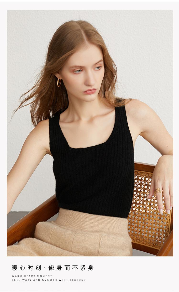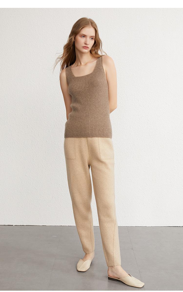 Camisola de Caxemira Feminina 100% Caxemira Pura Corte Simples e Ajustado Roupa Íntima Cor Sólida Decote U Pulôver Tricotado Colete Quente
