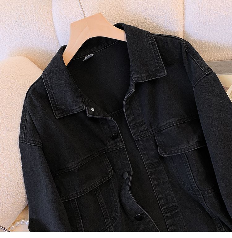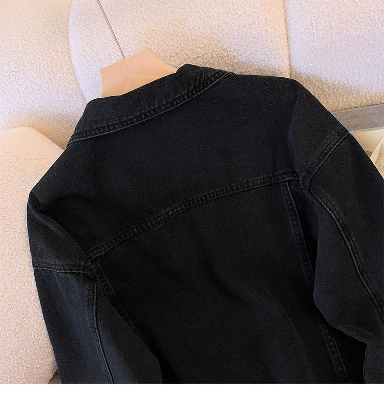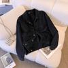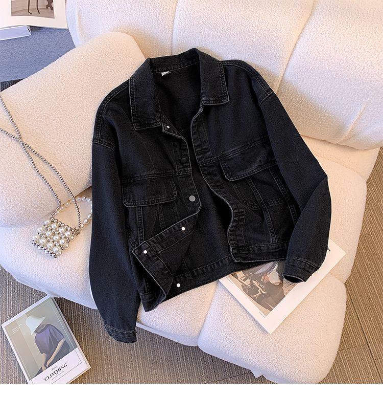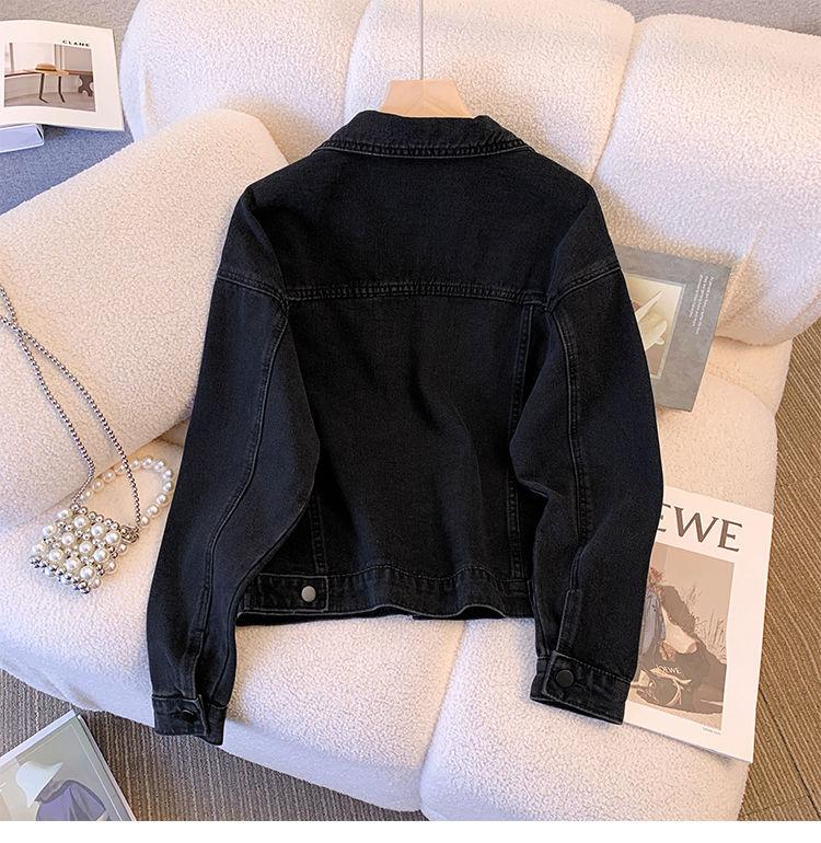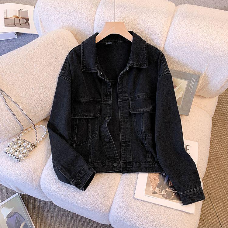 Jaqueta jeans preta feminina primavera e outono curta 2025 novo estilo coreano solta versátil pessoa pequena casual jaqueta top