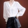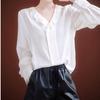 Grande Alegria|Camisa Anthony|Crepe de Seda China Ombro Reto Colarinho Pontudo Listras Bloco de Cor Clássica Versão para o Trabalho Camisa 2025