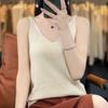 Regata de Caxemira Feminina 100% Caxemira Pura Outono/Inverno Nova Gola Redonda Canelada Ajustada Tricotada Roupa Íntima Camisola