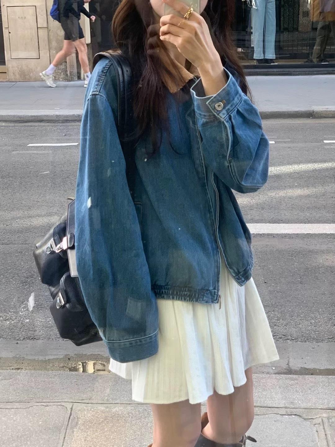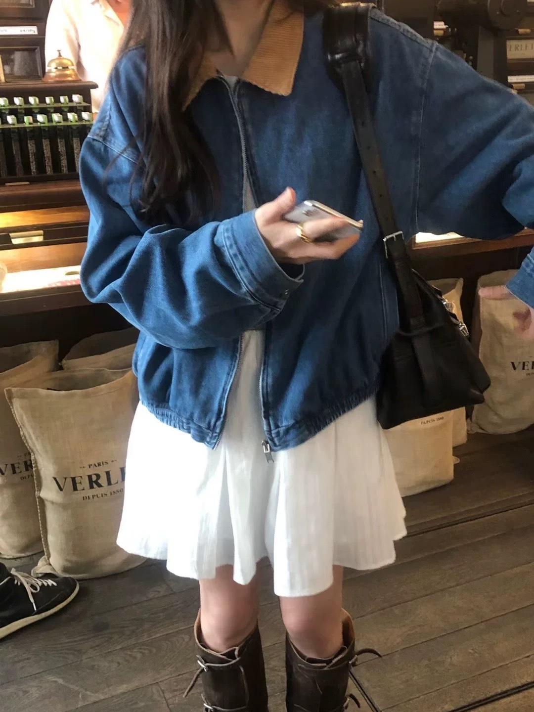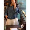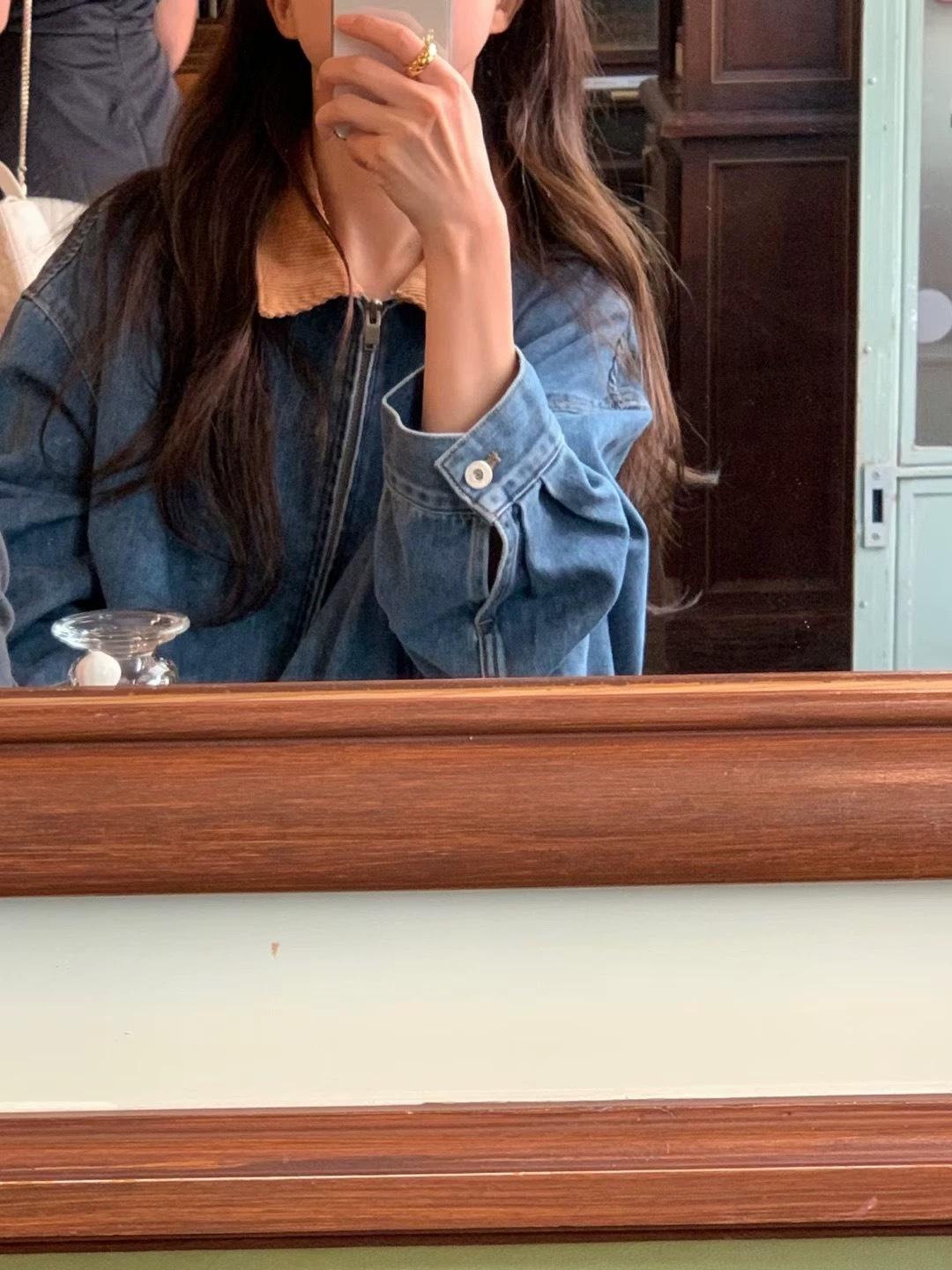 Ins coreano outono novo estilo moderno versátil patchwork lapela zíper jaqueta jeans top solto roupa feminina