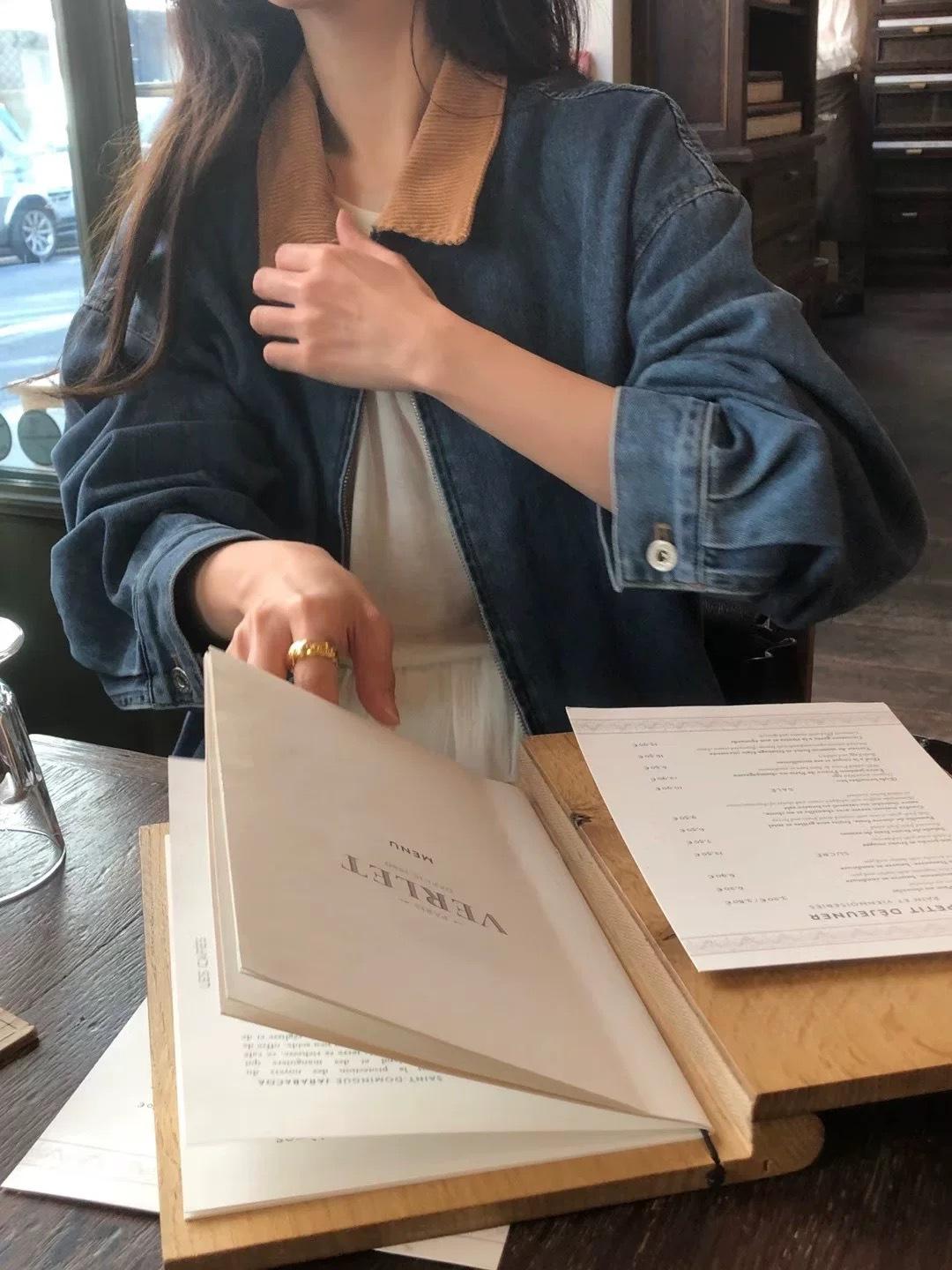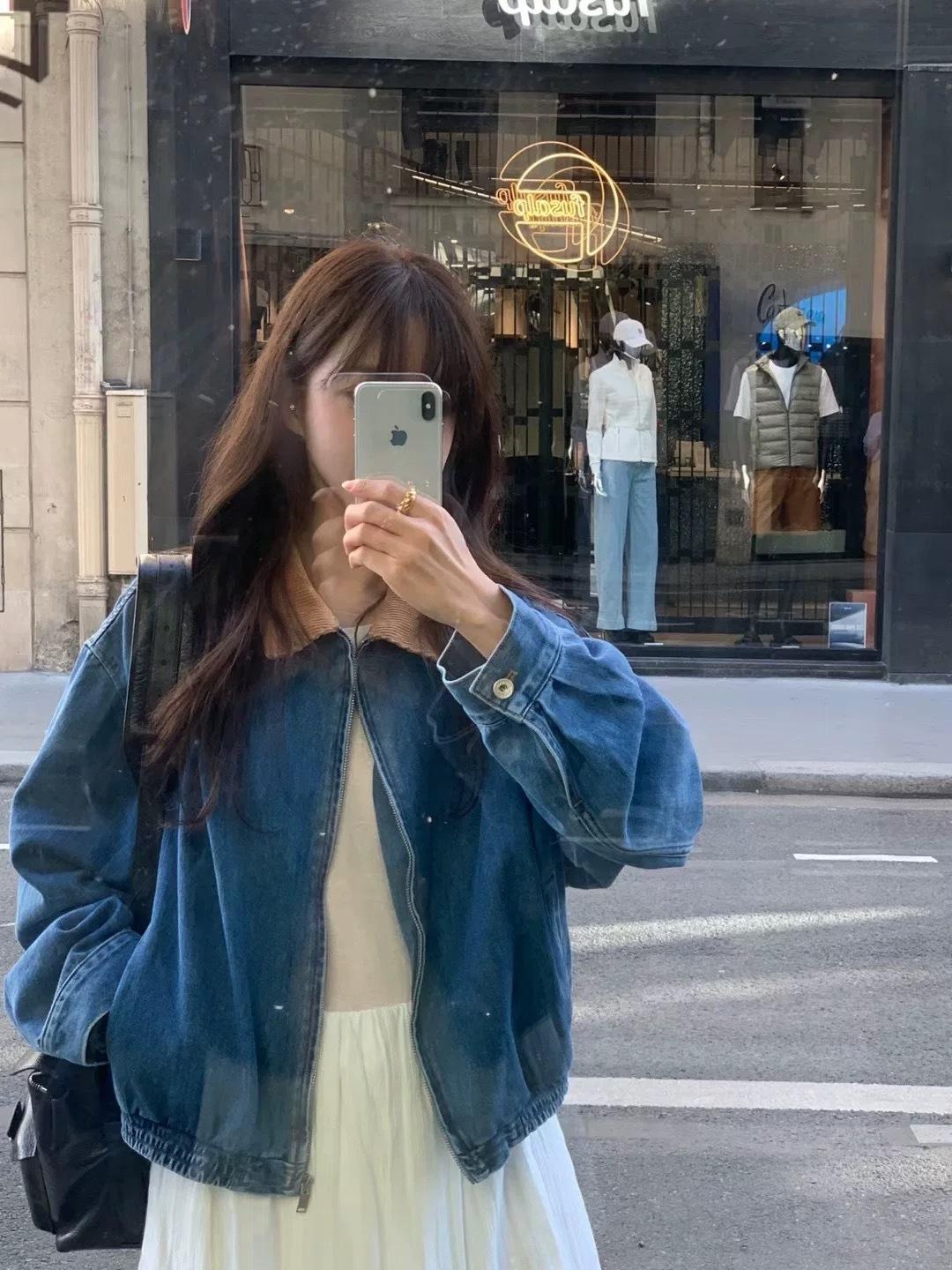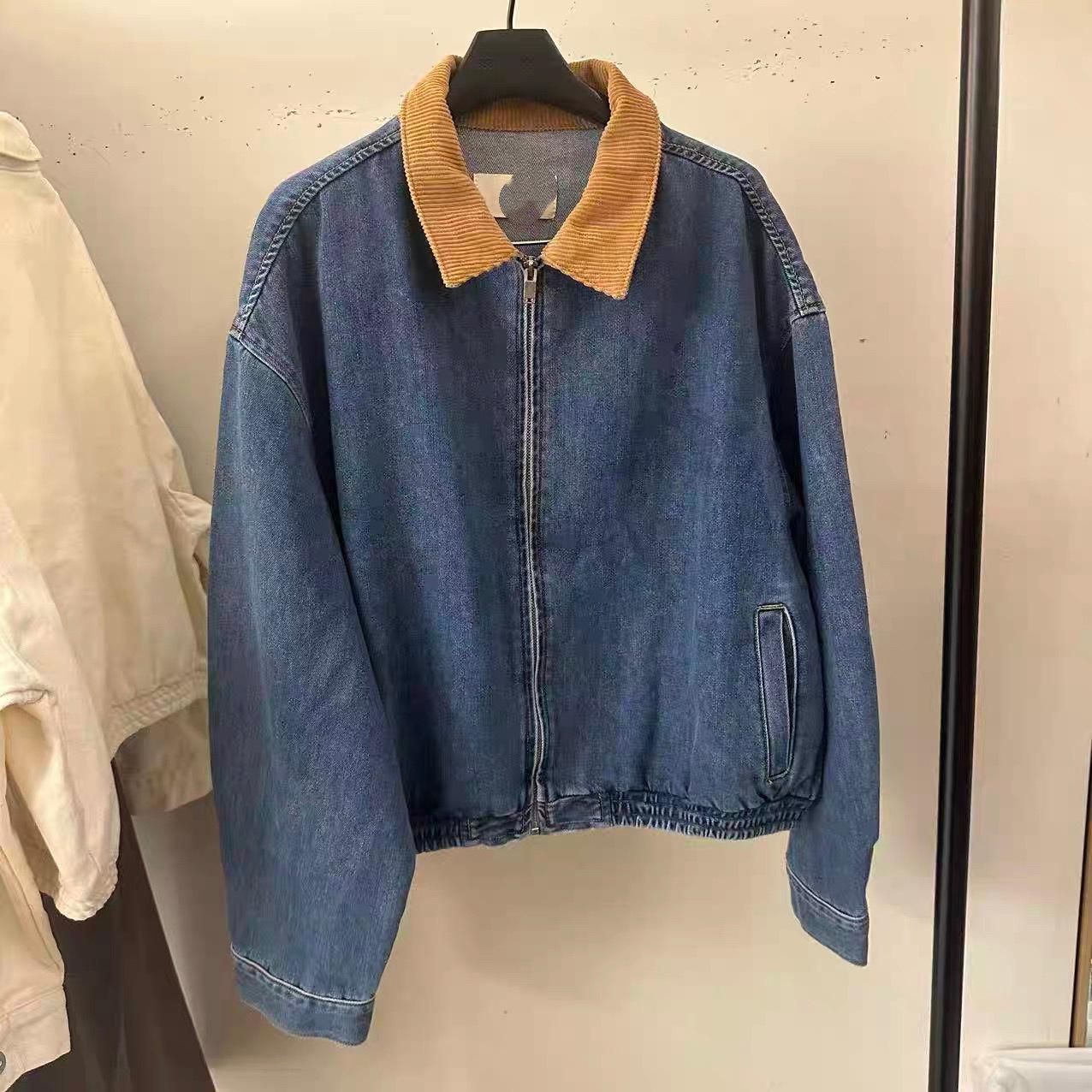 Ins coreano outono novo estilo moderno versátil patchwork lapela zíper jaqueta jeans top solto roupa feminina
