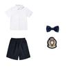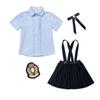 Women's light blue short-sleeved shirt + suspender skirt, Men's light blue short-sleeved shirt + navy blue sho...