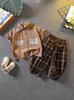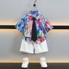 Jardim de Infância Verão Novo Estilo Britânico Terno de Camisa de Manga Curta Vestido Infantil Roupas para Apresentação