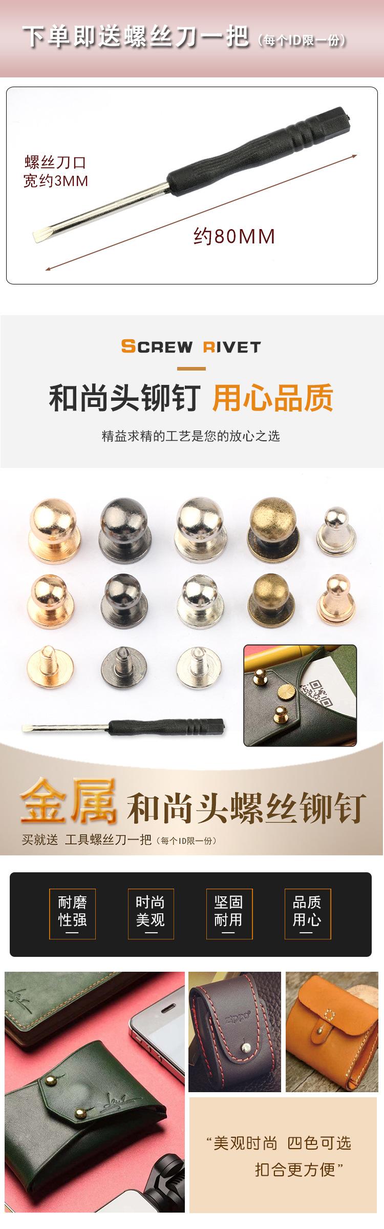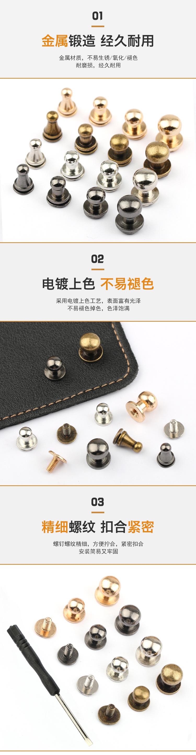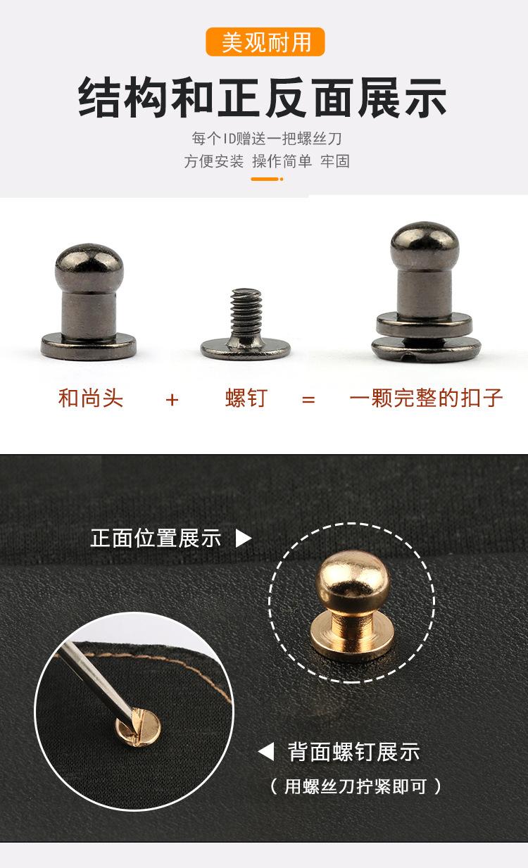 Fonte atacadista metal cabeça de monge parafuso botão carteira cinto gancho acessórios artigos de couro alça de bolsa rebite prego de mamilo