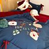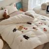 Outono/Inverno Conjunto Fofo de Urso Flanela de Algodão Puro Quatro Peças Bordado de Desenho Animado Espessado Quente Capa de Edredom Roupa de Cama Azul e Branco