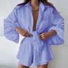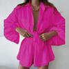 Verão 2023 Europeu e Americano Transfronteiriço Novo Moda Casual Feminina Cor Sólida Shorts Babados Terno Manga Longa