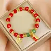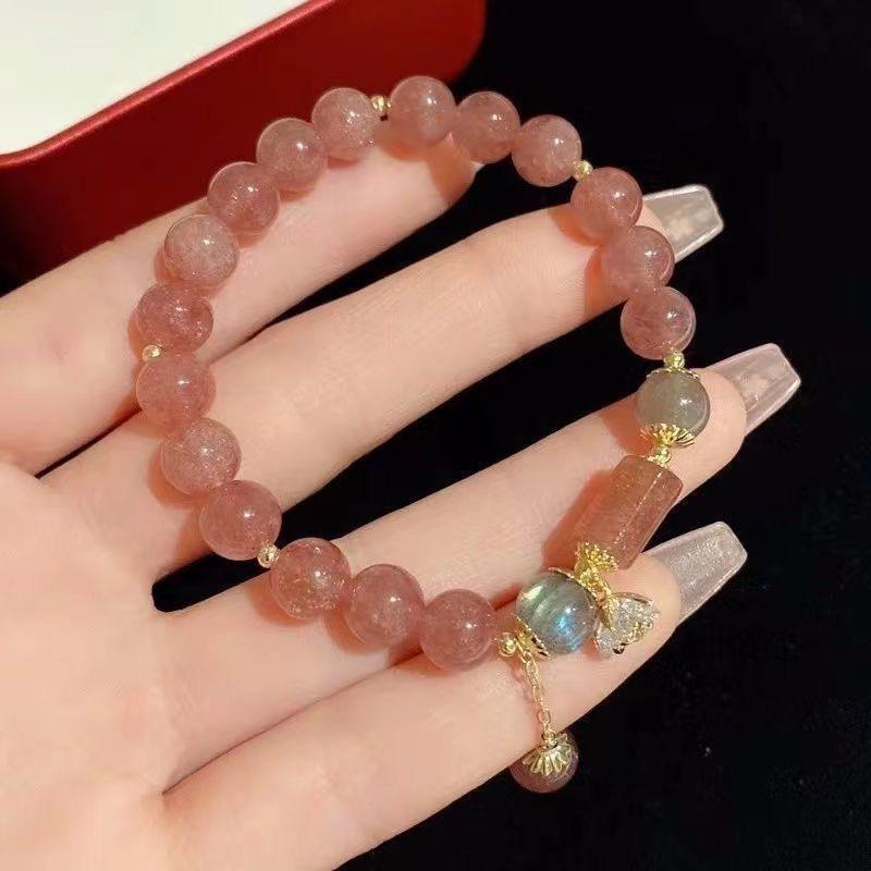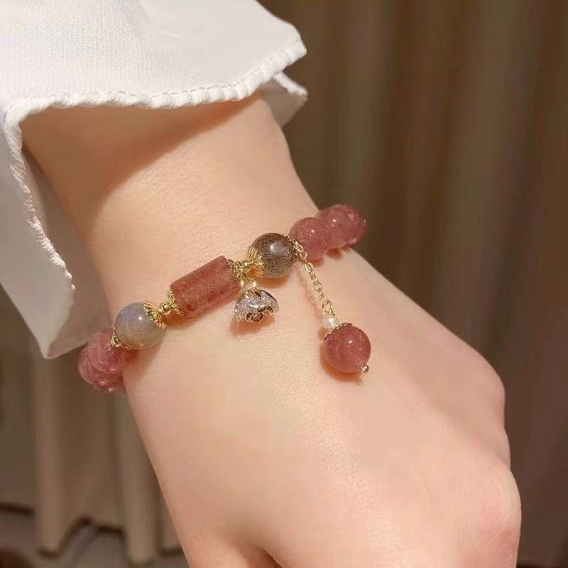 Pulseira Ninho Luxo Leve Flor de Pérola de Morango Estilo Chinês Novo Combina com Tudo Namorada Elegante Pingente de Raiz de Lótus Pulseira Joia