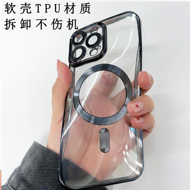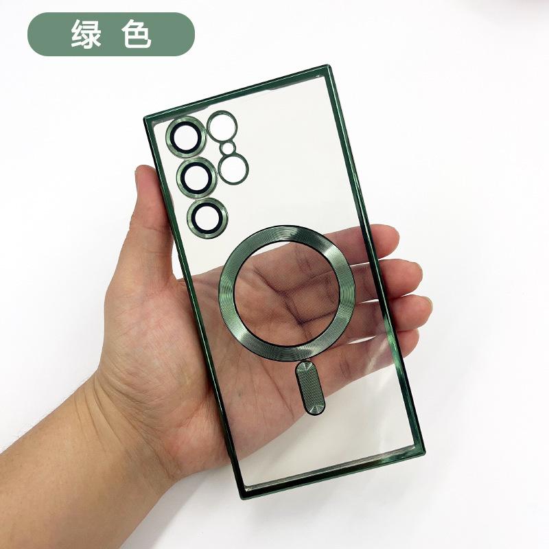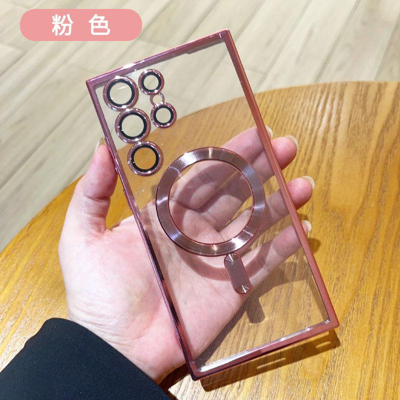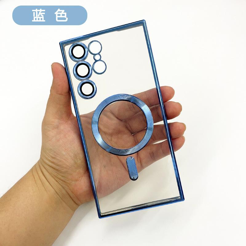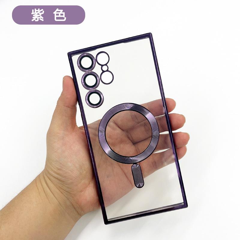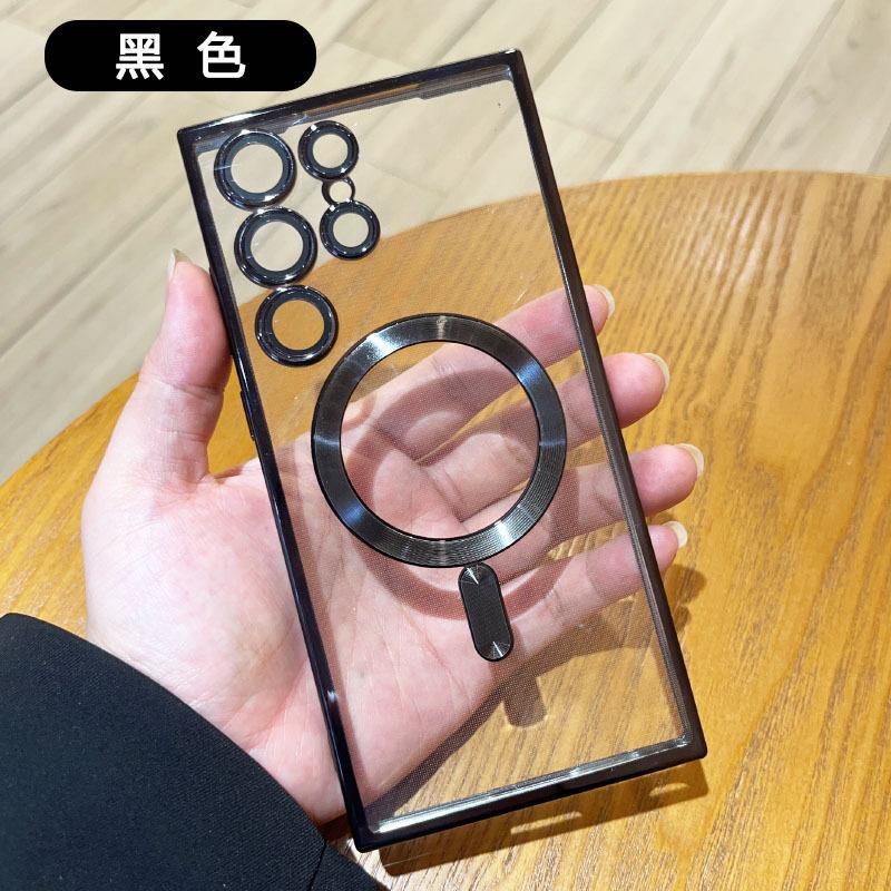Nome do Produto: Capa Protetora Aplicável Samsung S24Ultra Cobertura Total Película para Lente Transparente Capa Mole S23FE Capa de Telefone Magnética Galvanizada