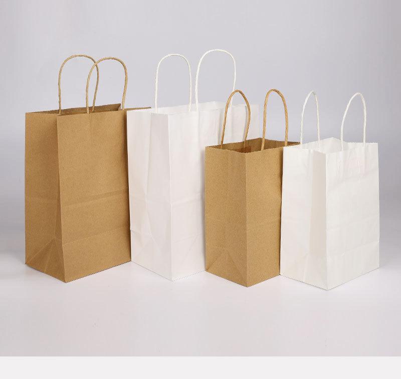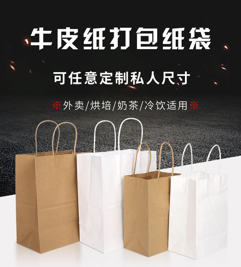Bolsa de papel Kraft branco para levar café, leite, chá, catering, embalagem para viagem, cordão redondo, sacola de presente para roupas, sacola de embalagem para compras