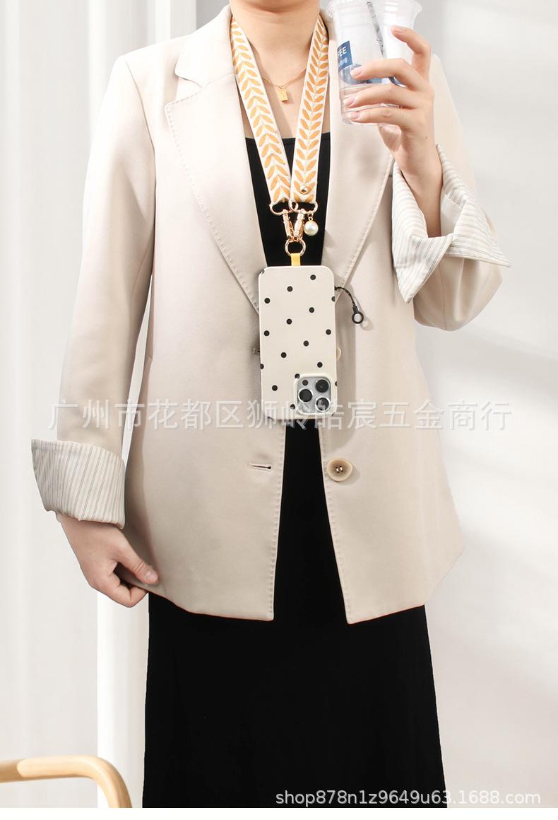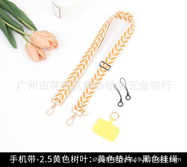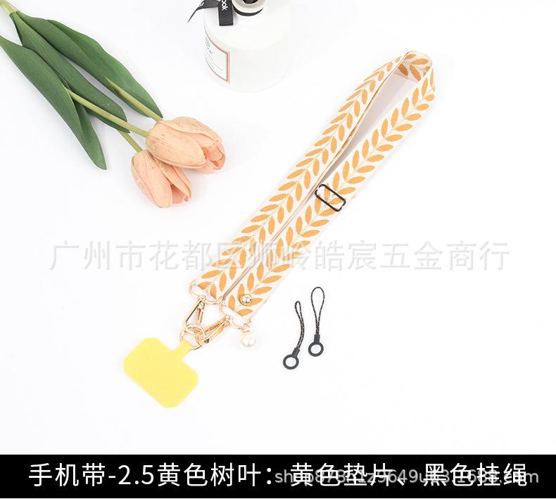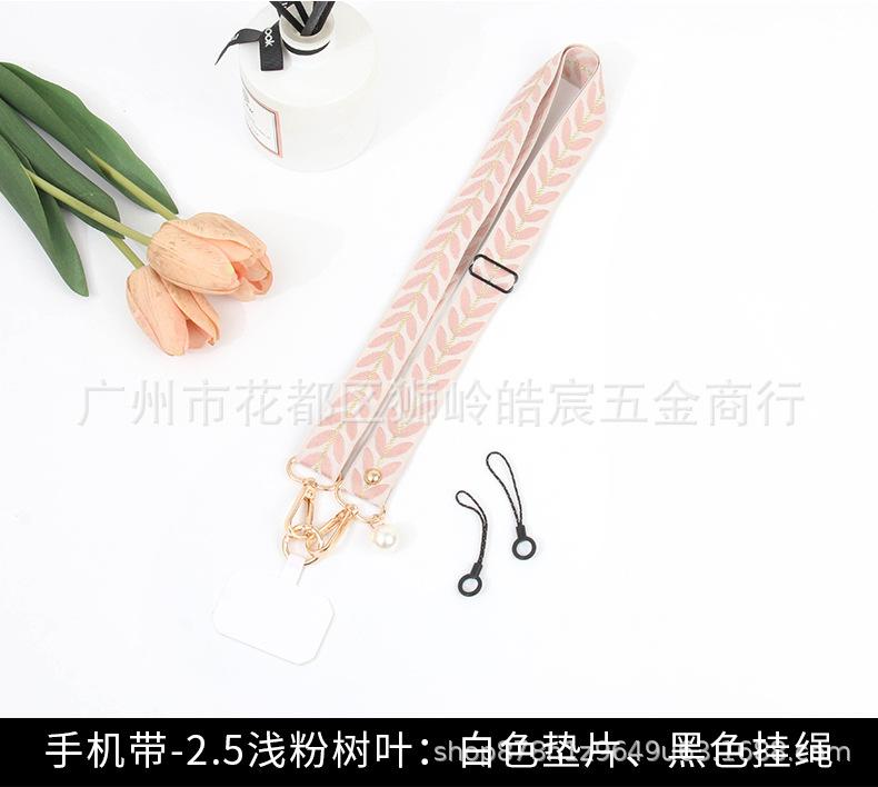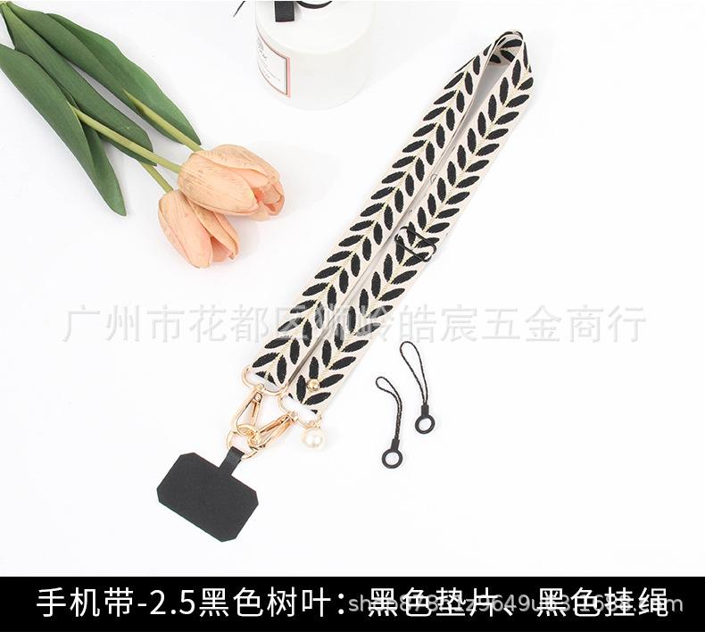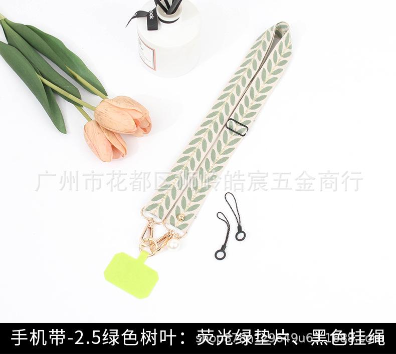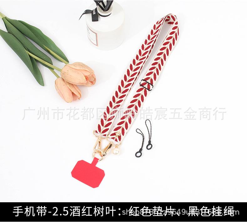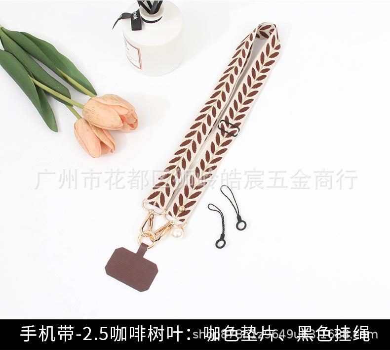 Cordão para Celular Bordado Folha de Rattan Alça Longa Transversal Corrente Pendente de Pérola Ajustável Cordão Pendente de Pescoço Pendente de Ombro