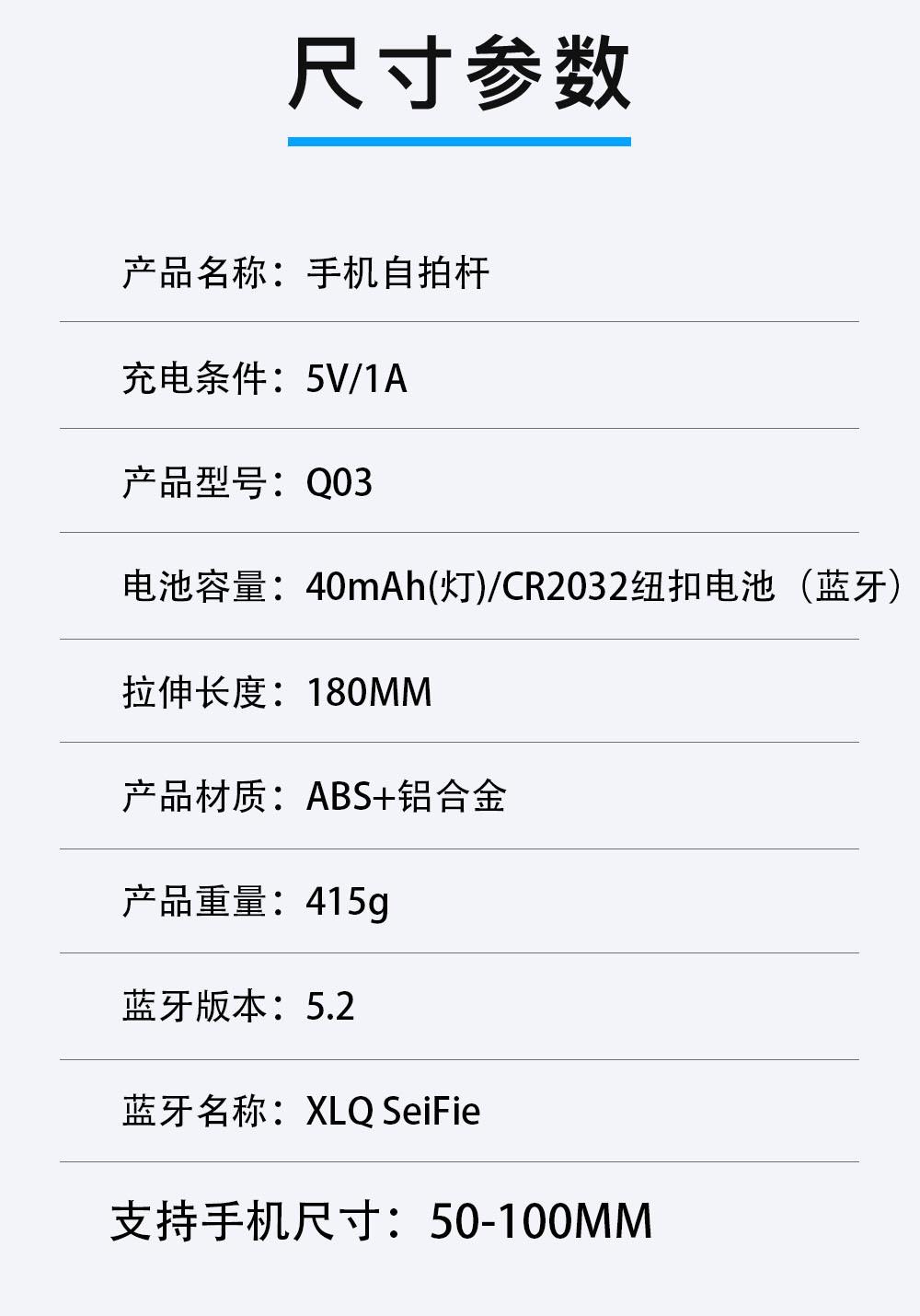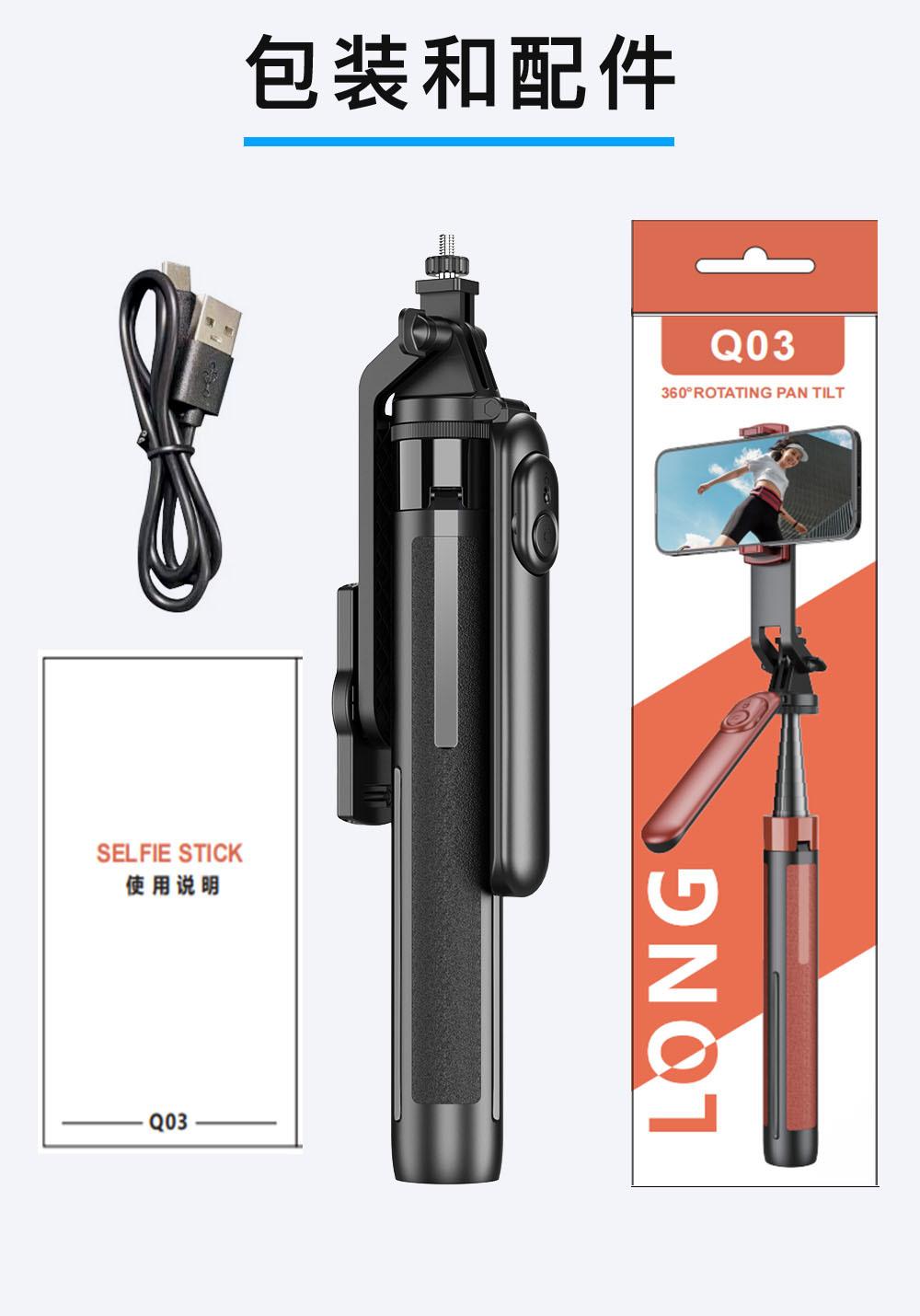 Bastão de Selfie Q03 Mais Vendido Integrado Portátil para Tirar Fotos e Vídeos Telescópico Bluetooth Suporte para Transmissão ao Vivo Tripé para Câmera