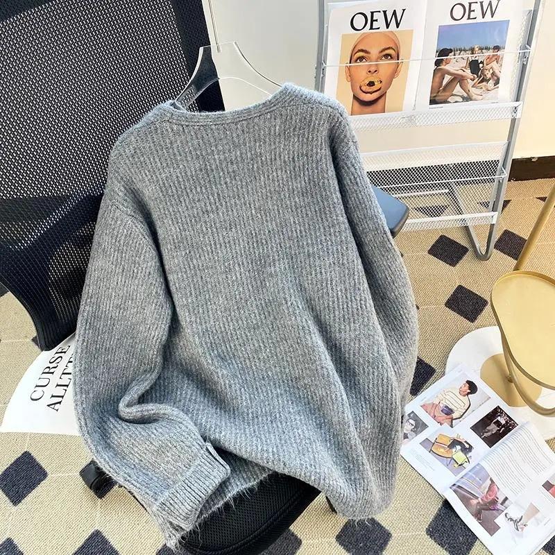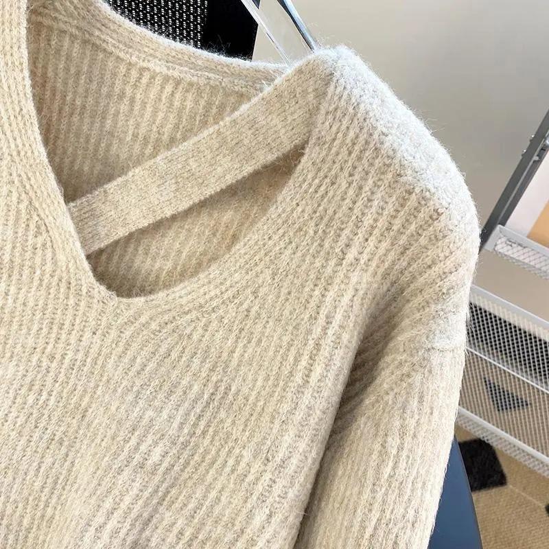 Suéter Pulôver Vazado Sense de Alta Qualidade Feminino Outono e Inverno Estilo Coreano Design Espessado Sense Nicho Estilo Preguiçoso Suéter Tricotado