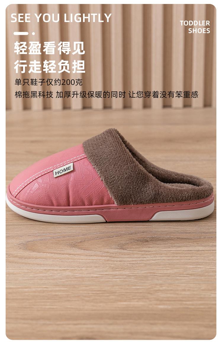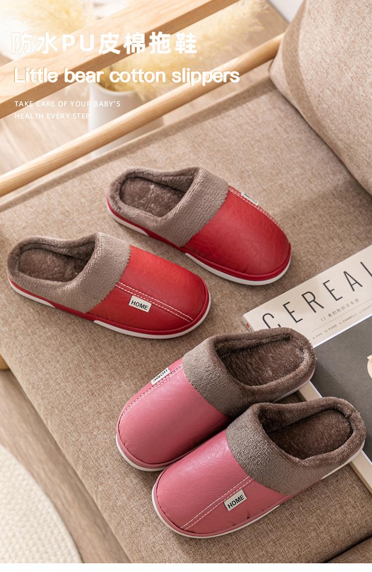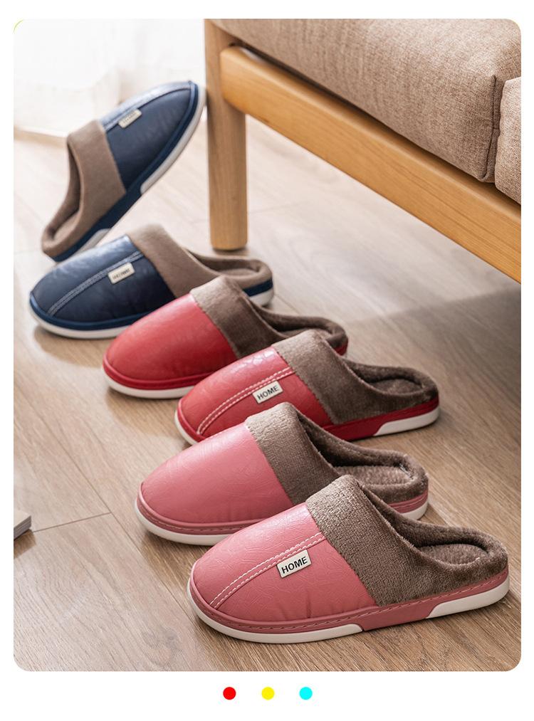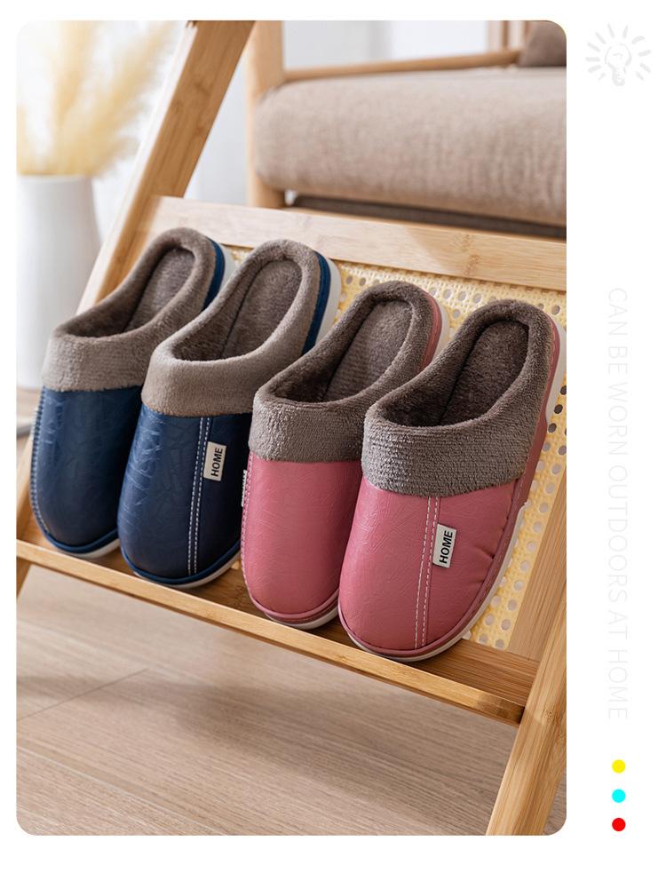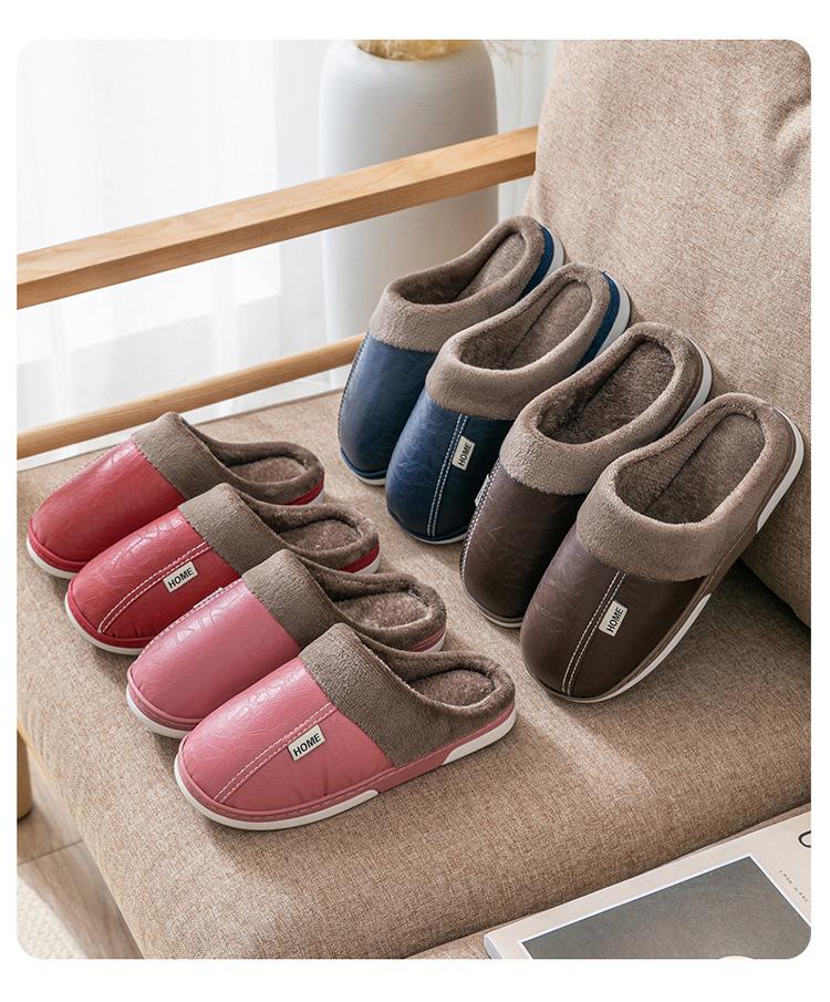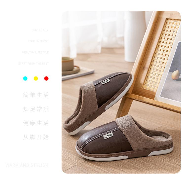 Chinelos de algodão para mulheres outono e inverno casal interno quente antiderrapante casa PU impermeável simples chinelos de algodão para homens atacado