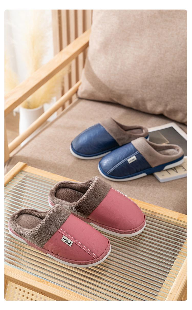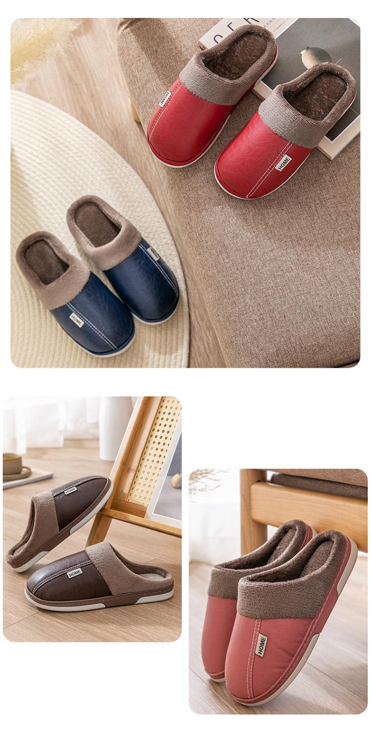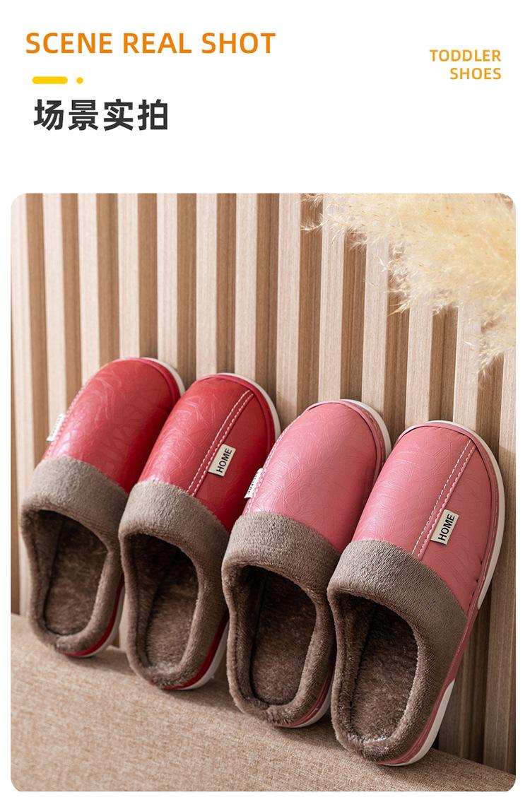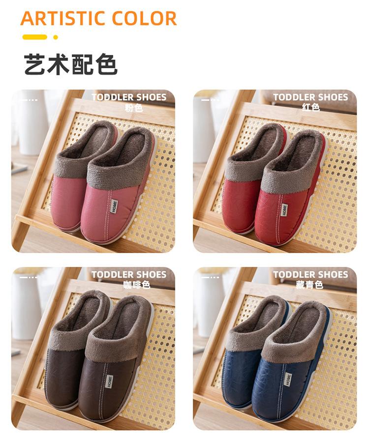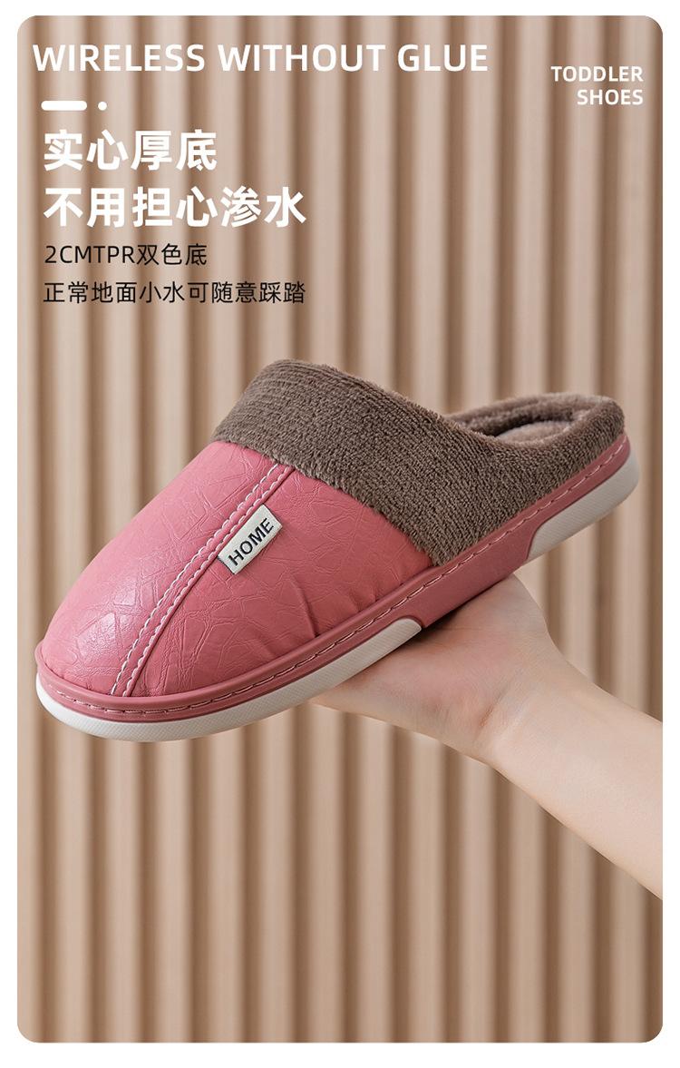 Chinelos de algodão para mulheres outono e inverno casal interno quente antiderrapante casa PU impermeável simples chinelos de algodão para homens atacado