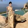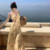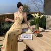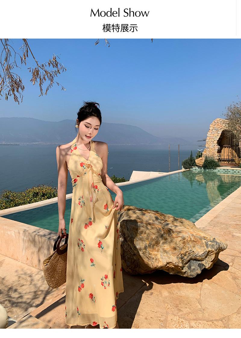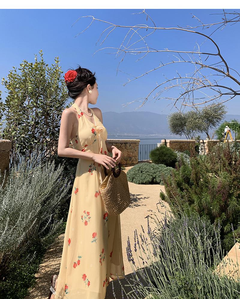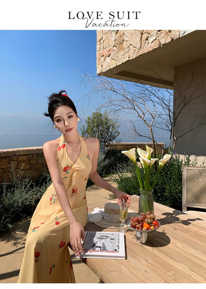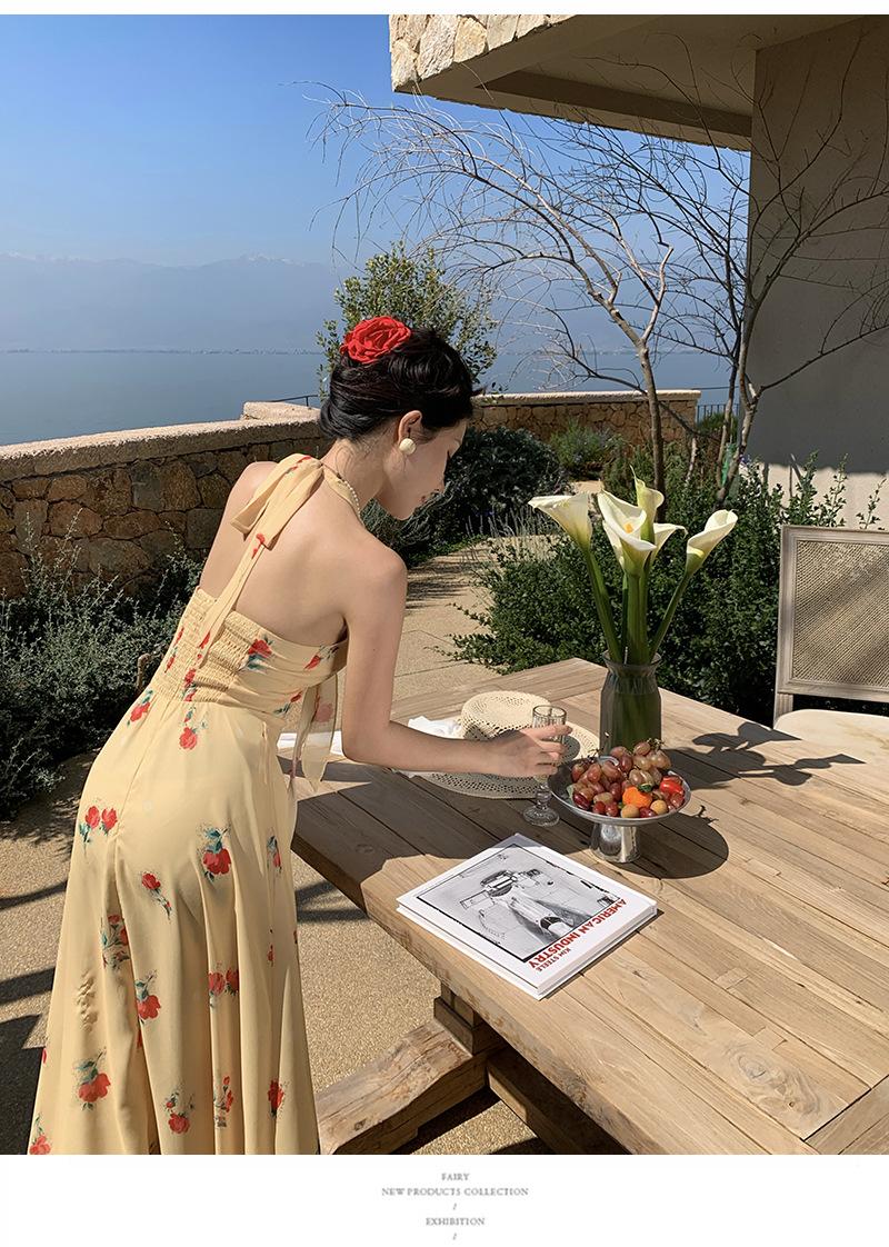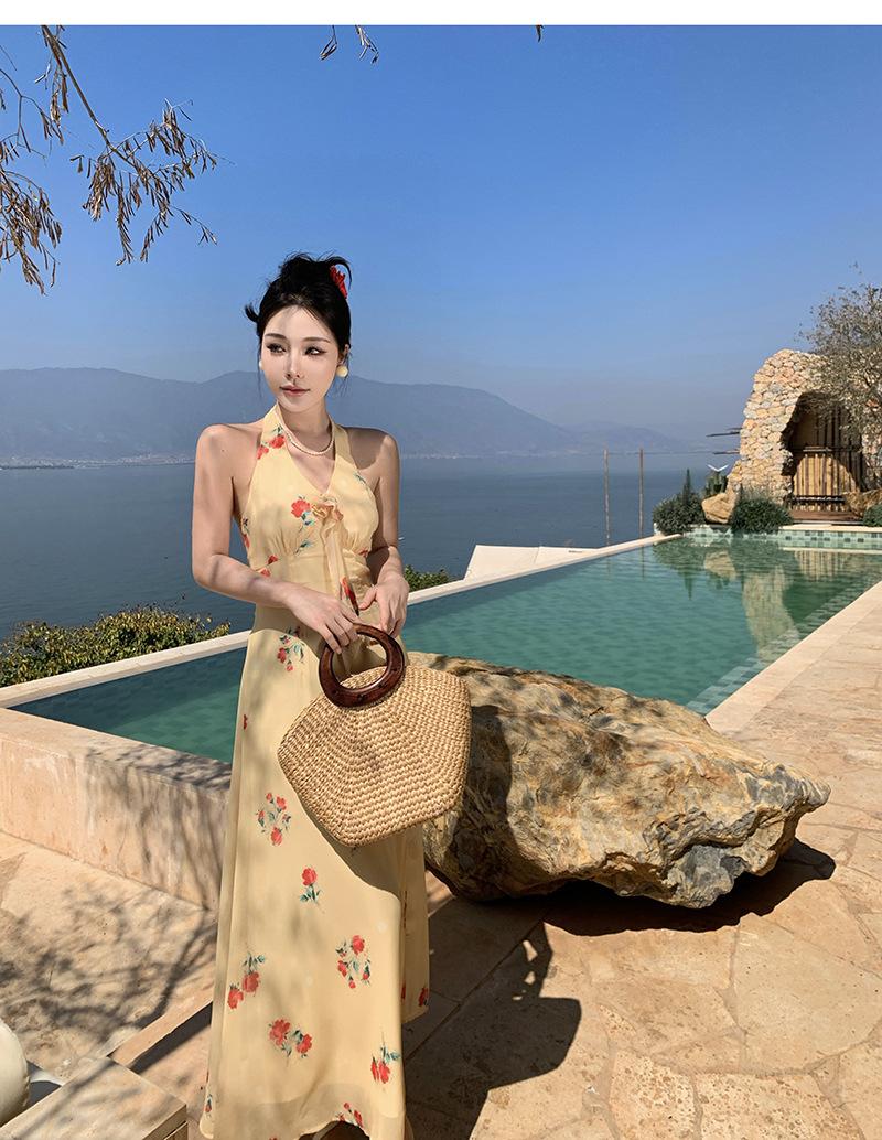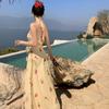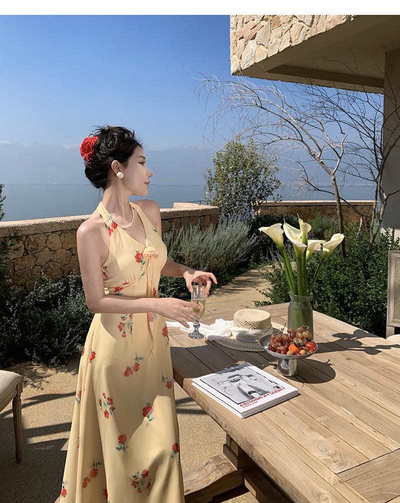 Vestido de Feriado Estampado com Decote Halter sem Costas na Cintura