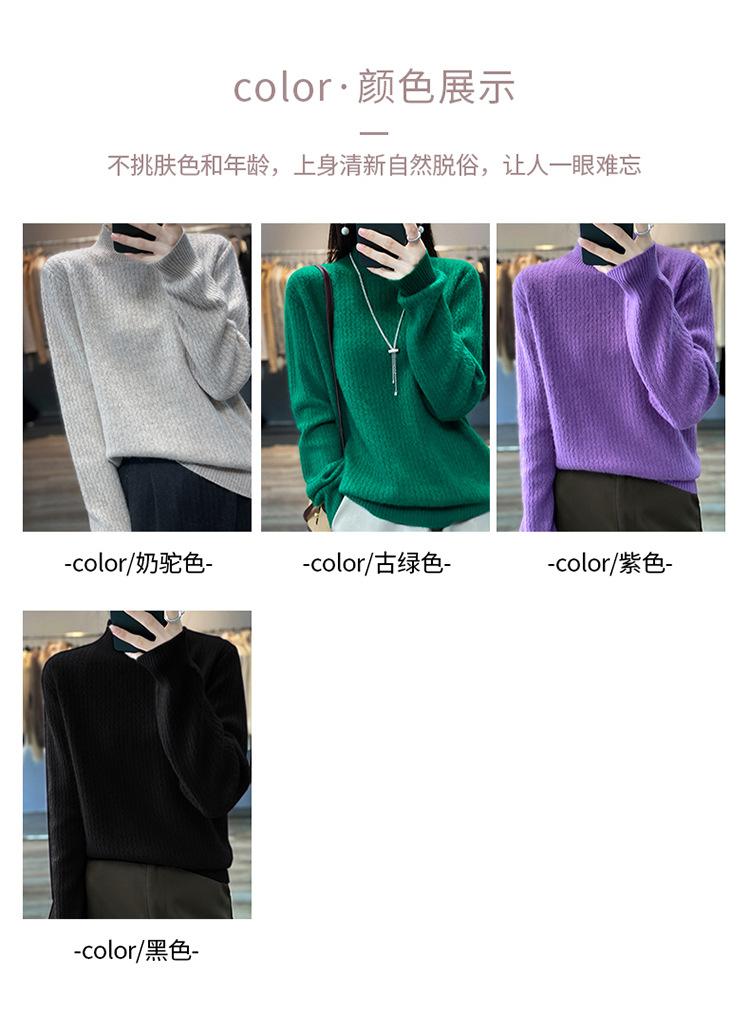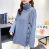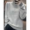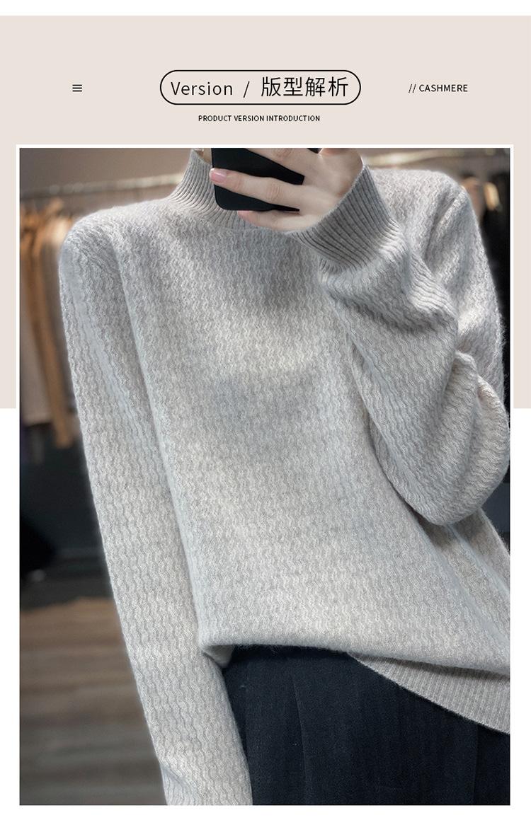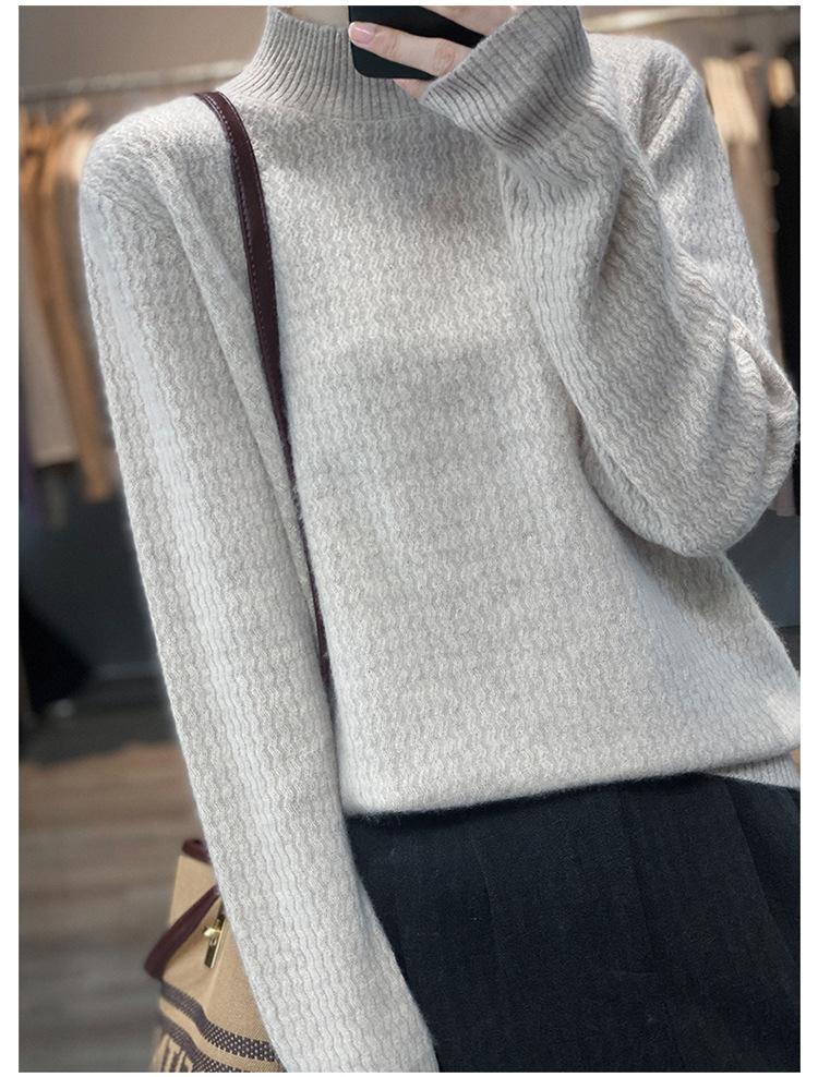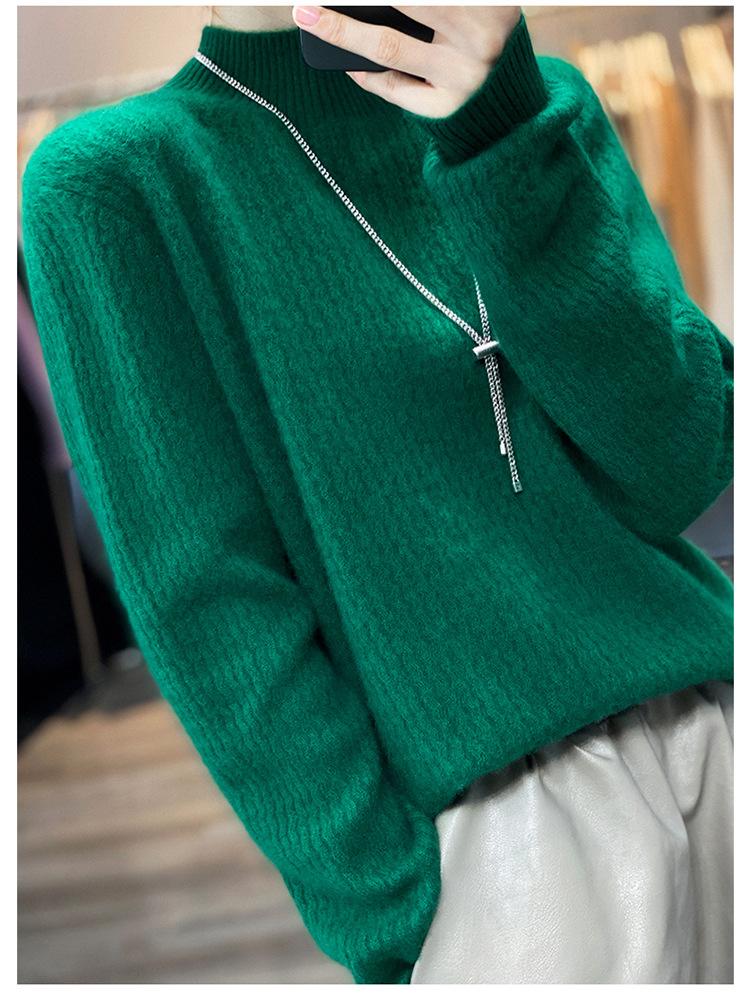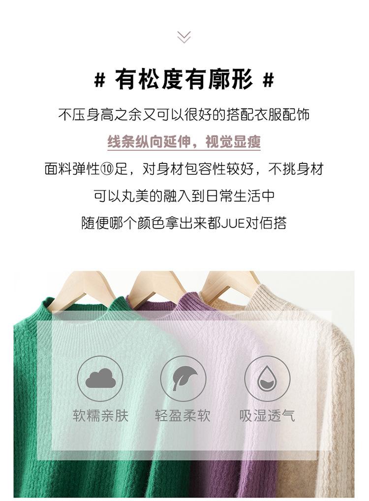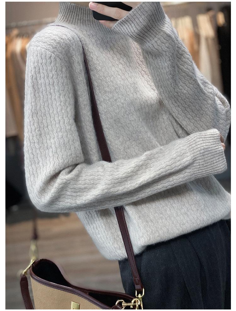 Outono e inverno 2022 Novo pulôver de malha feminino de lã inteira casual solto cor sólida gola alta dobrada ondulação de água para o dia a dia