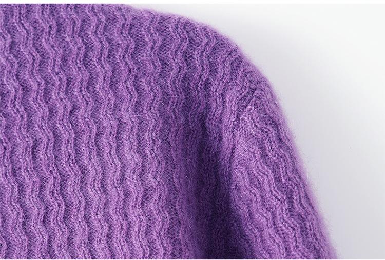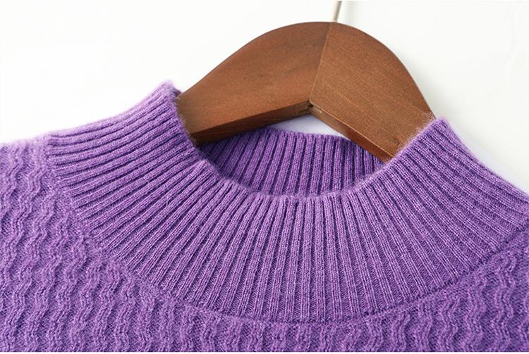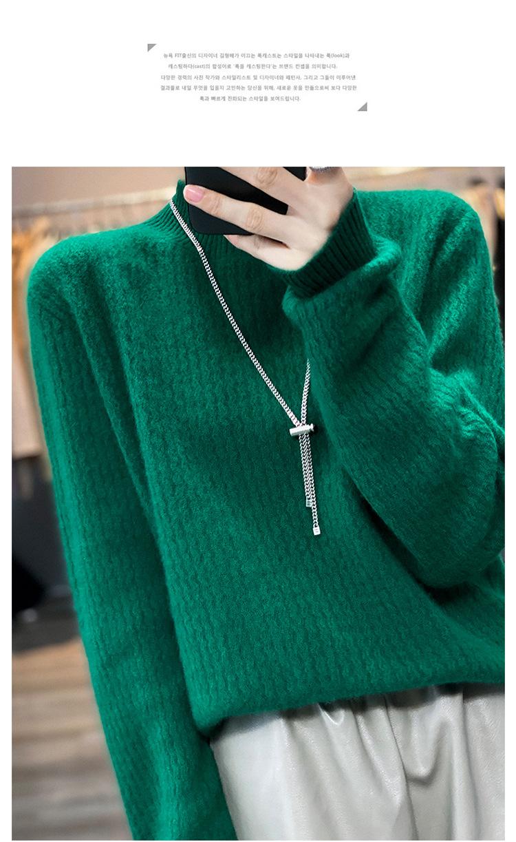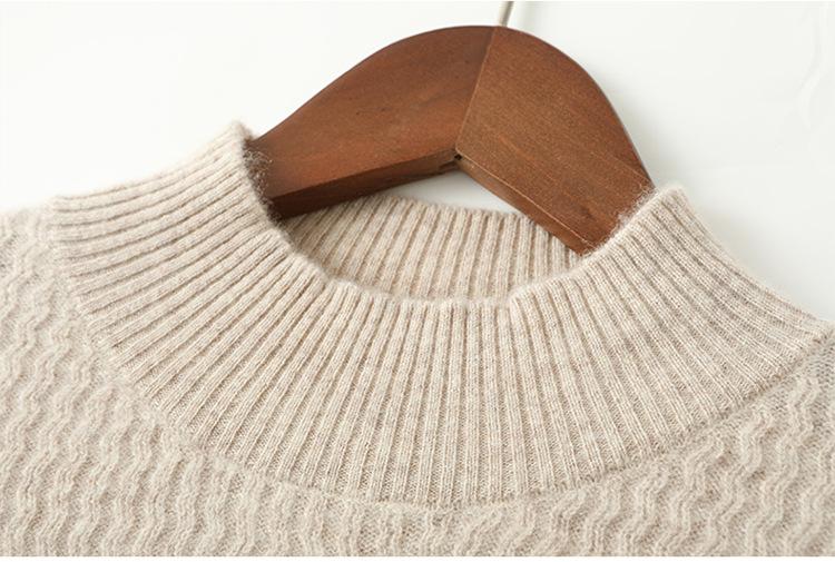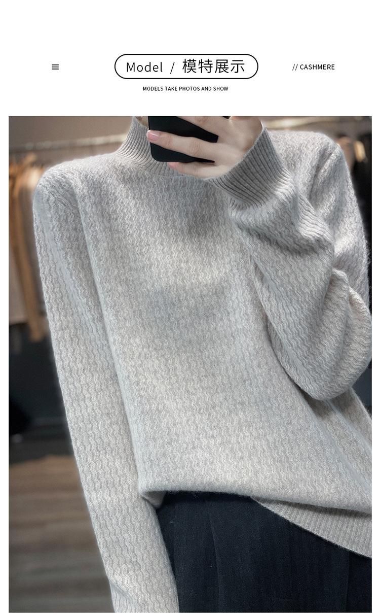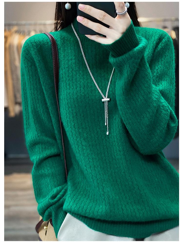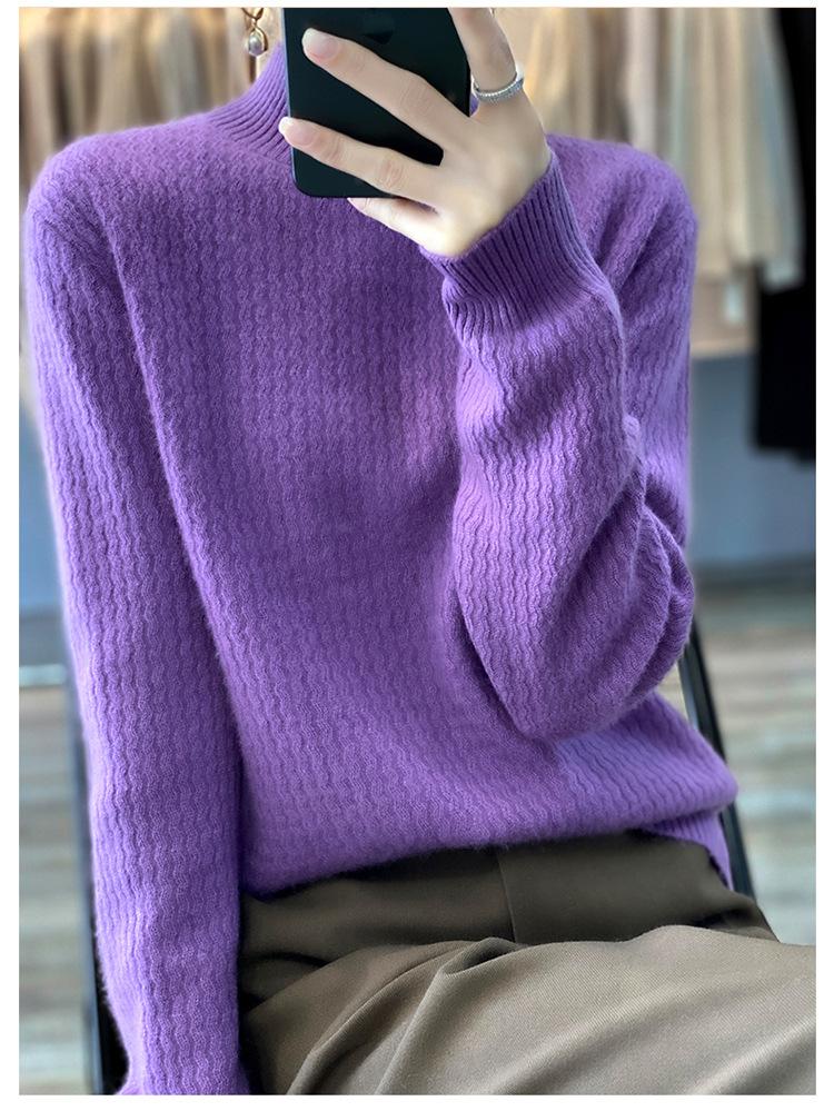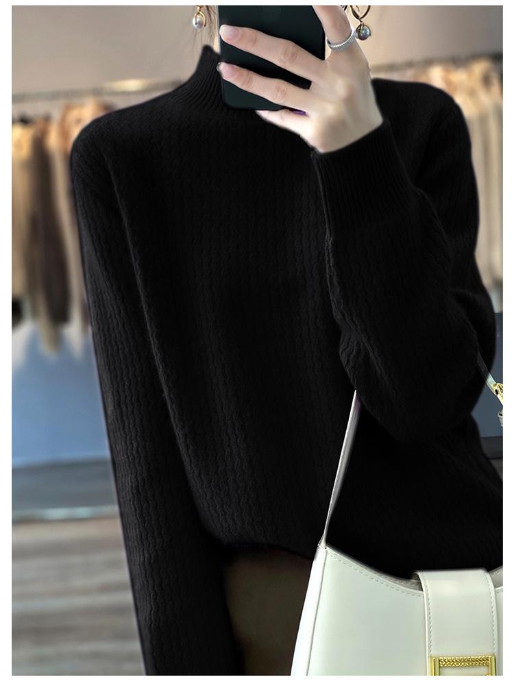 Outono e inverno 2022 Novo pulôver de malha feminino de lã inteira casual solto cor sólida gola alta dobrada ondulação de água para o dia a dia