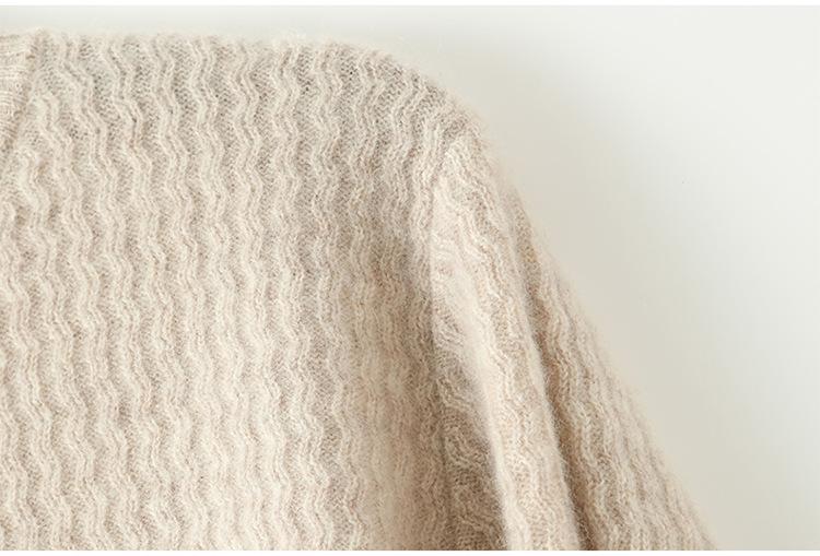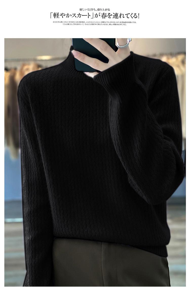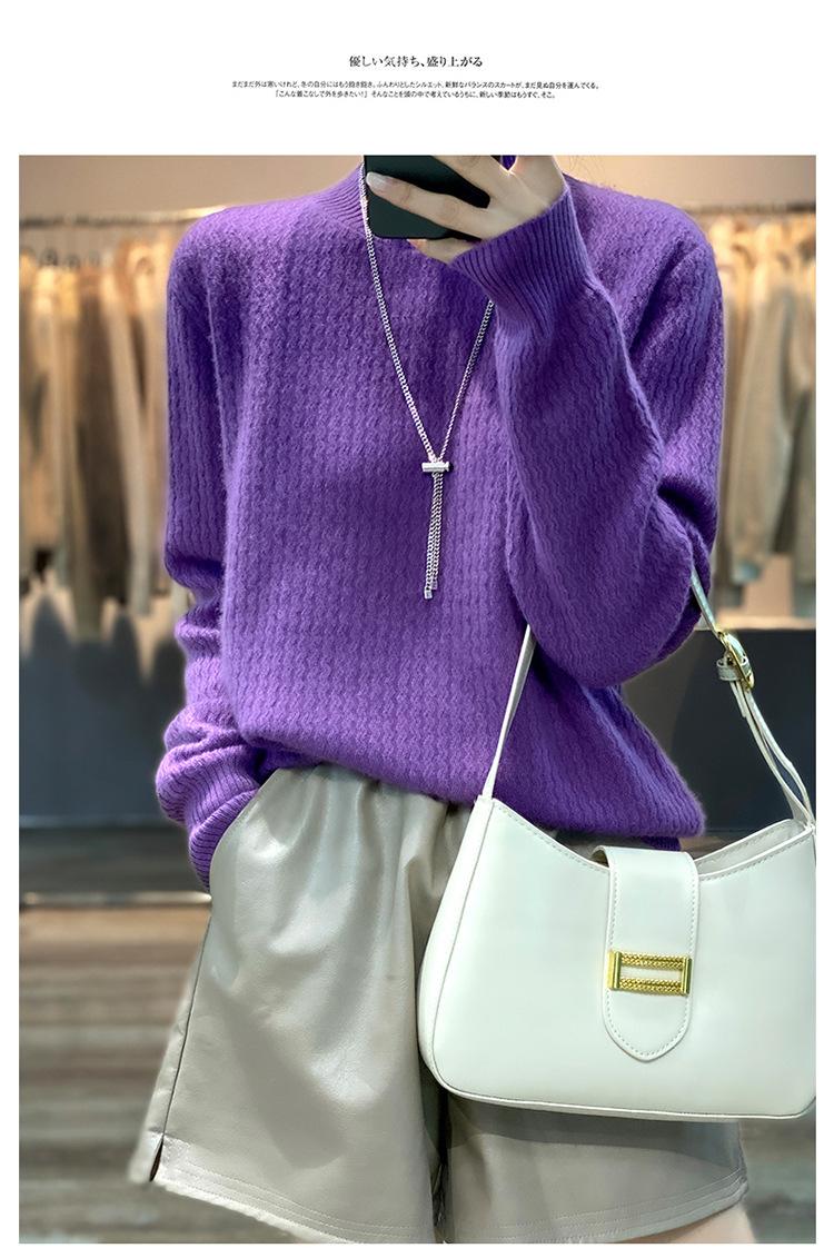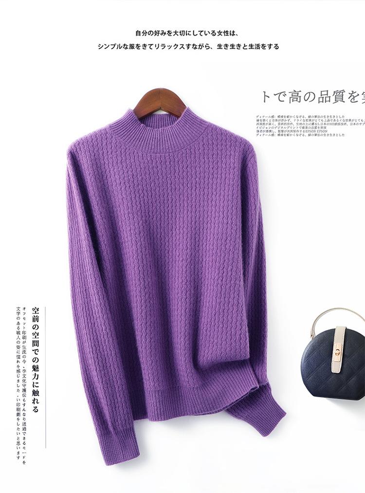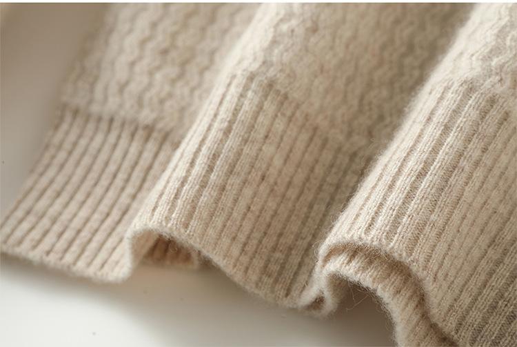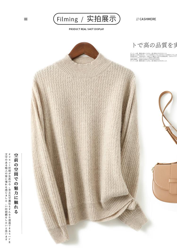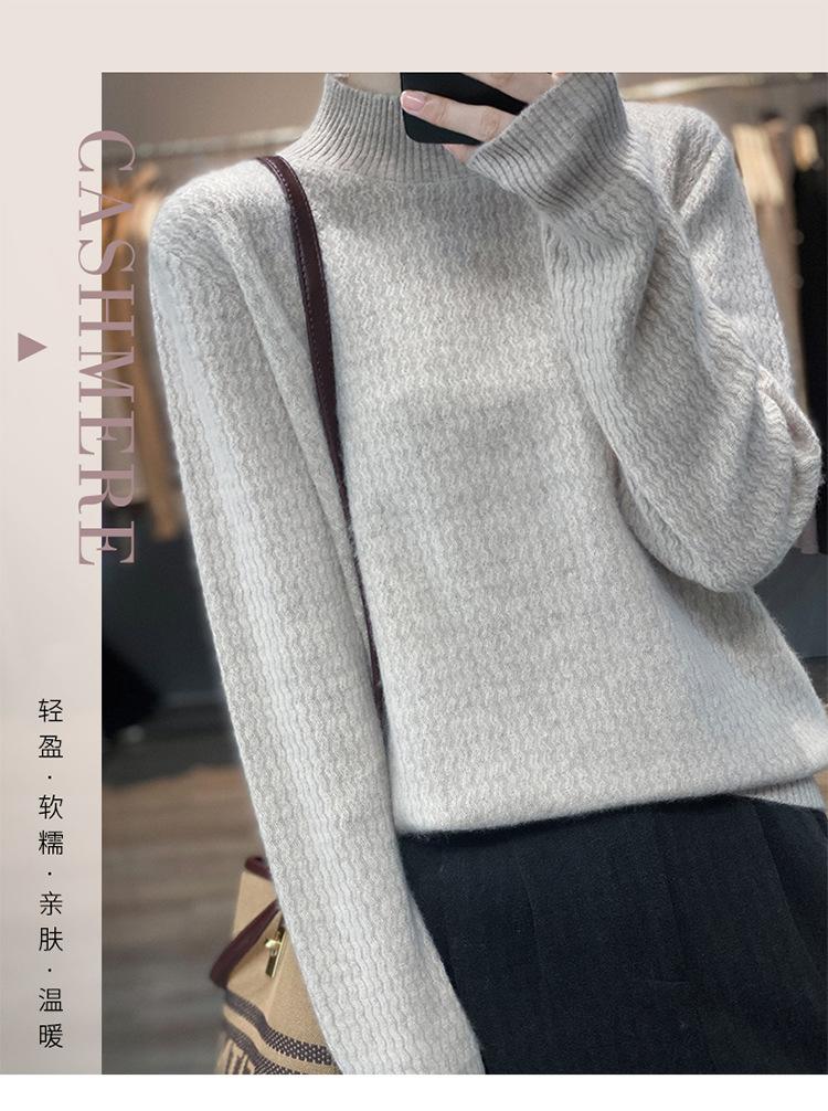 Outono e inverno 2022 Novo pulôver de malha feminino de lã inteira casual solto cor sólida gola alta dobrada ondulação de água para o dia a dia