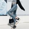 Calças jeans retrô de cintura alta para mulheres outono e inverno 2023 novas perna larga reta ins cintura elástica calças emagrecedoras