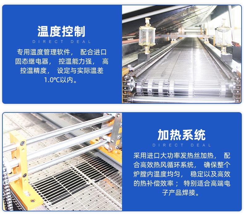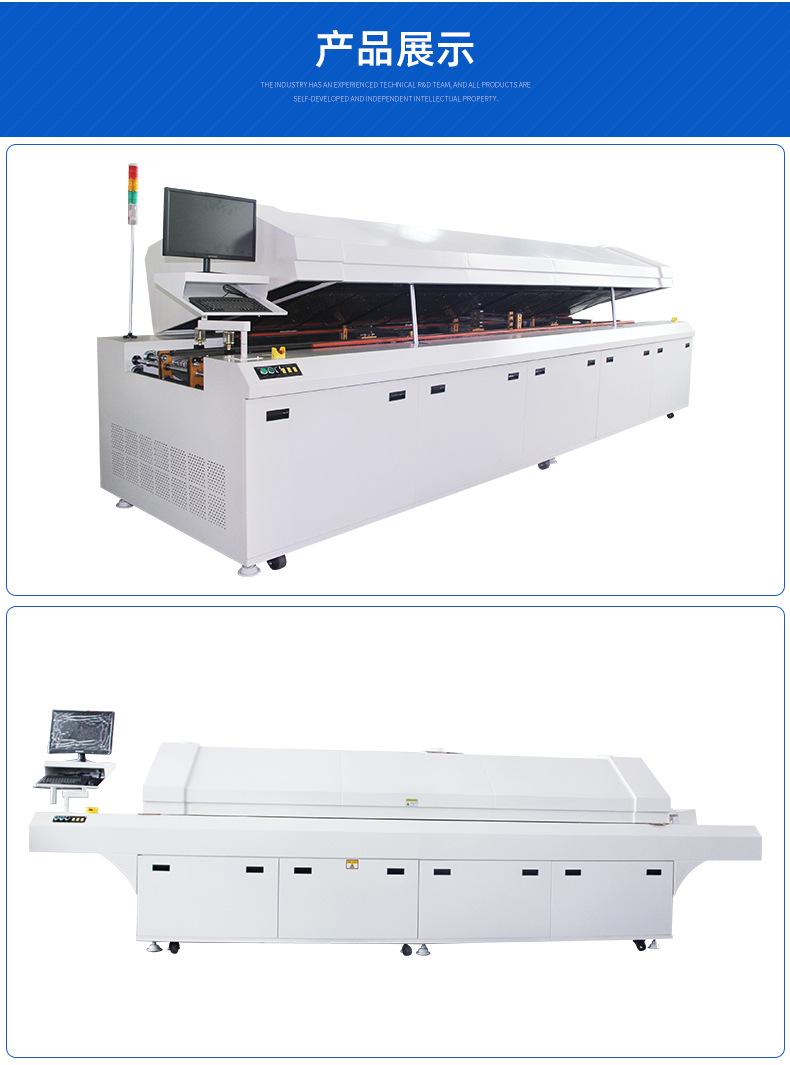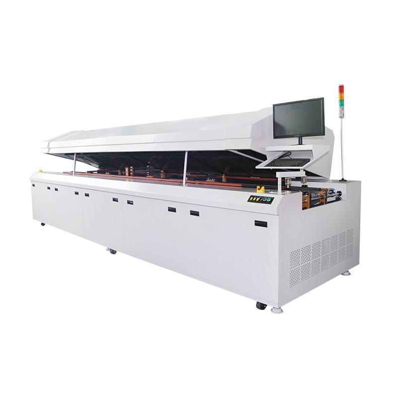 No campo da fabricação de produtos eletrônicos, as máquinas de solda por refusão pertencem ao equipamento do processo de soldagem após a colocação dos componentes na placa PCB. Através do ajuste da curva de controle de temperatura de diferentes zonas de temperatura, a placa PCB e os componentes são soldados juntos usando pasta de solda;
