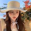 Chapéu de Palha com Laço de Renda Francesa para Mulheres Estilo Férias de Verão Aba Larga Chapéu de Proteção Solar Chapéu de Sol de Praia à Beira-Mar