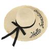 M (56-58cm) bow straw hat with raw edge letters