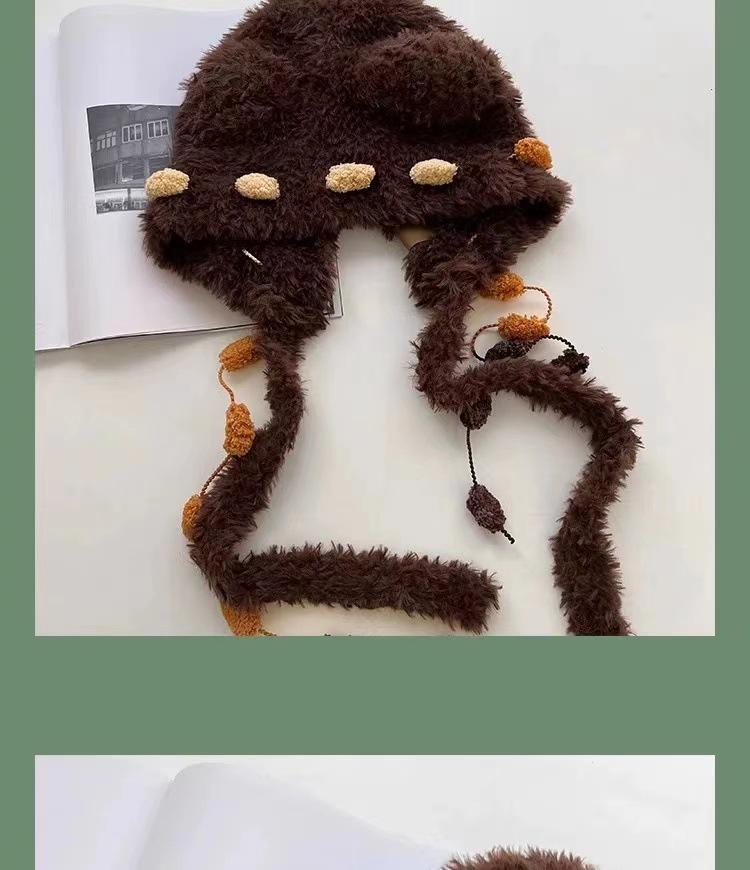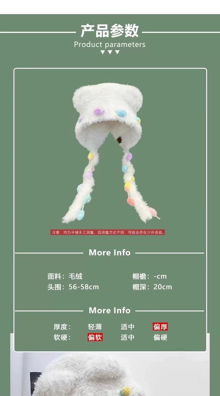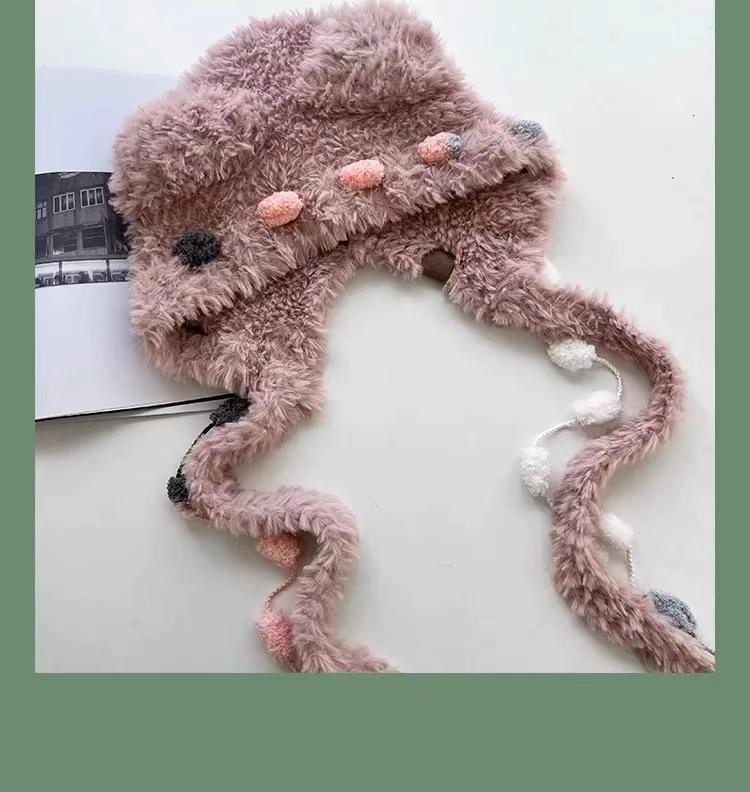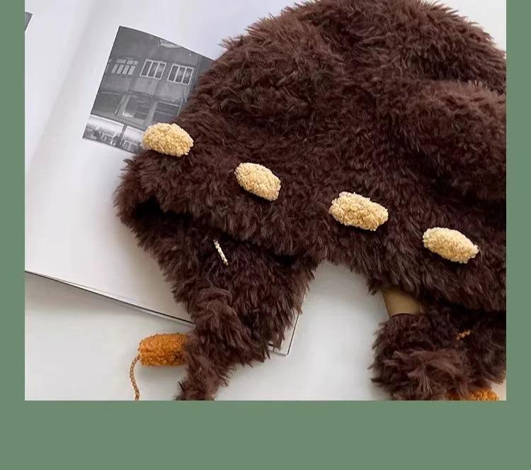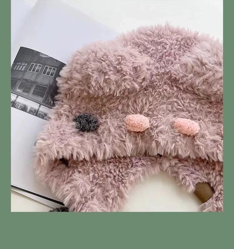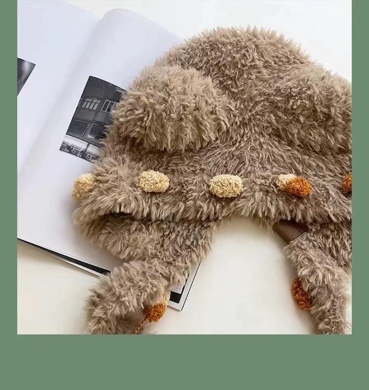 Japonês Bonito Urso Peludo Orelhas Lei Feng Chapéu Feminino Outono e Inverno Cor Quente Alça Proteção de Orelha Chapéu de Lã