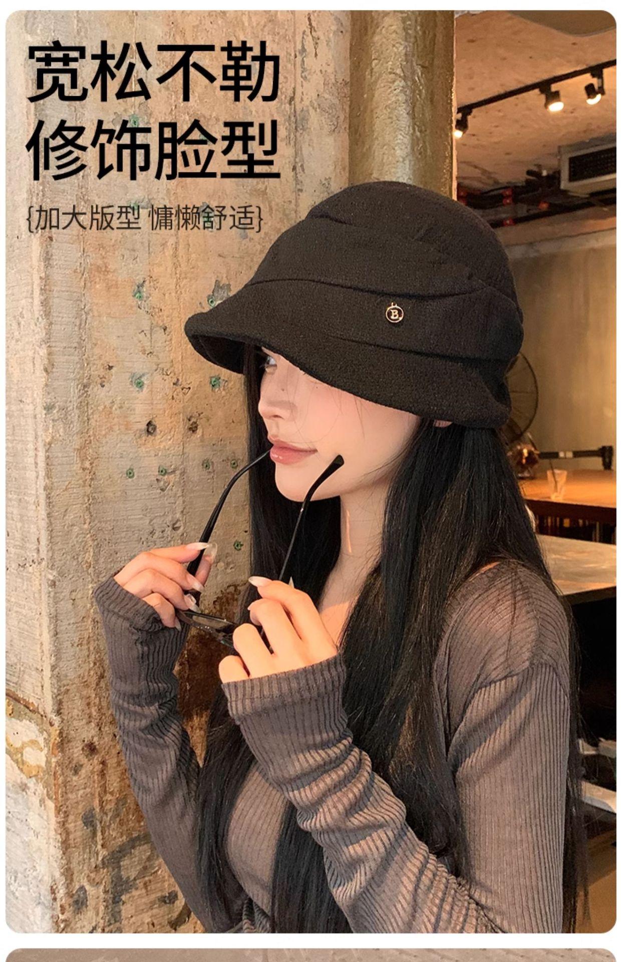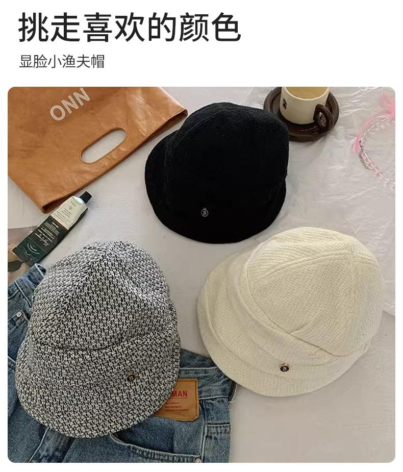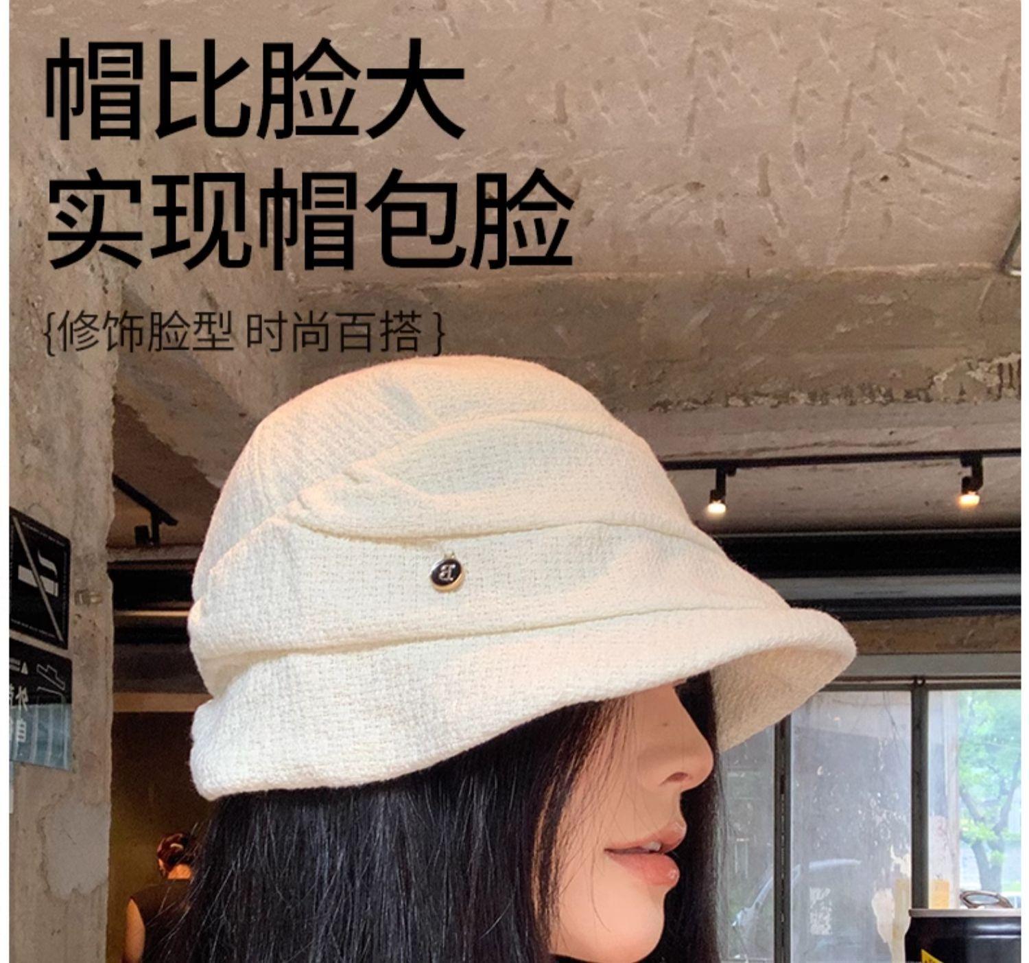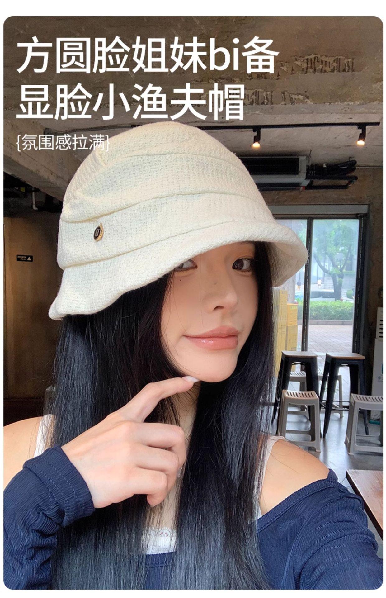 Chapéu de pescador branco feminino 2024 novo quadrado redondo rosto grande rosto pequeno chapéu de balde sombreamento simples cabeça grande chapéu de bacia