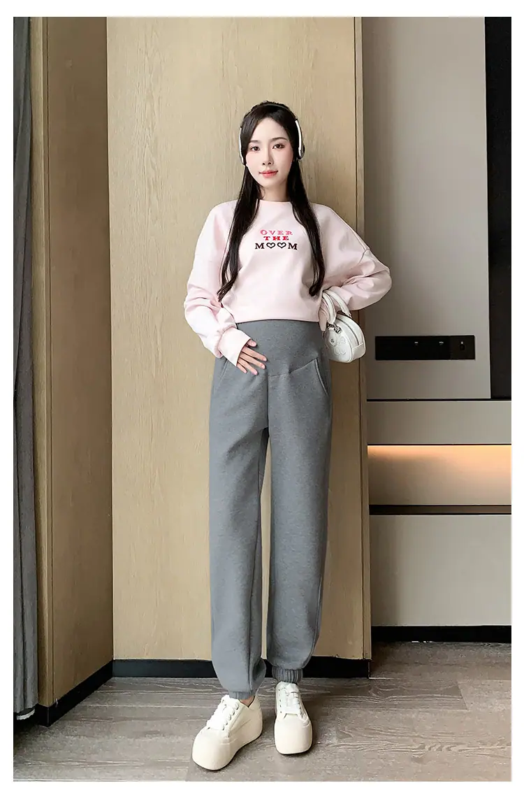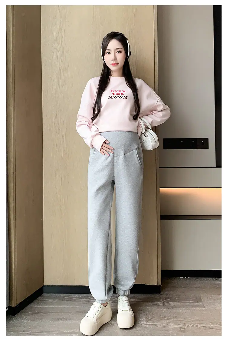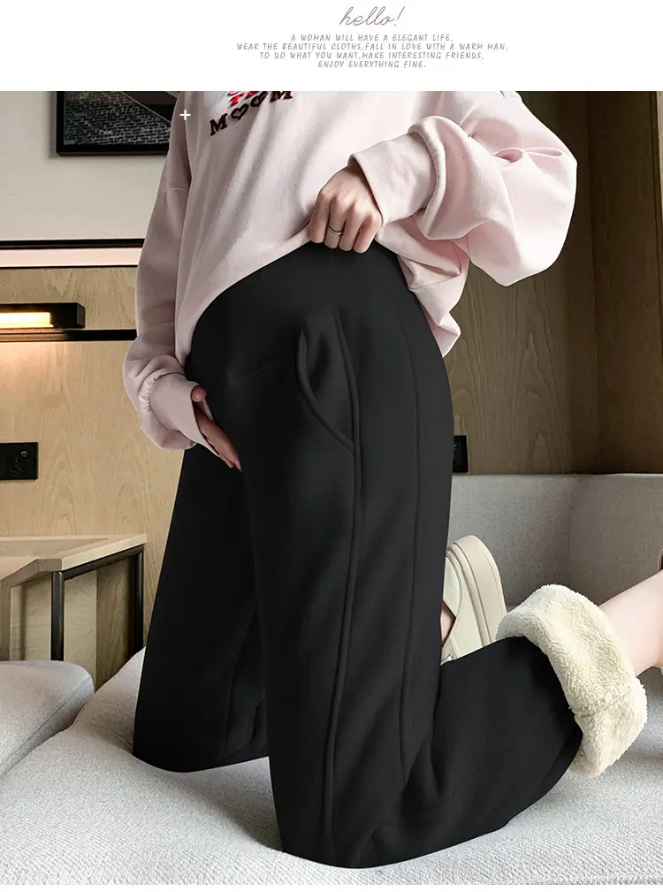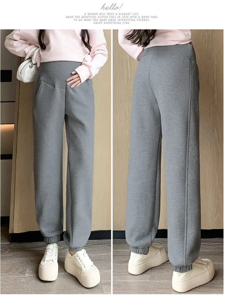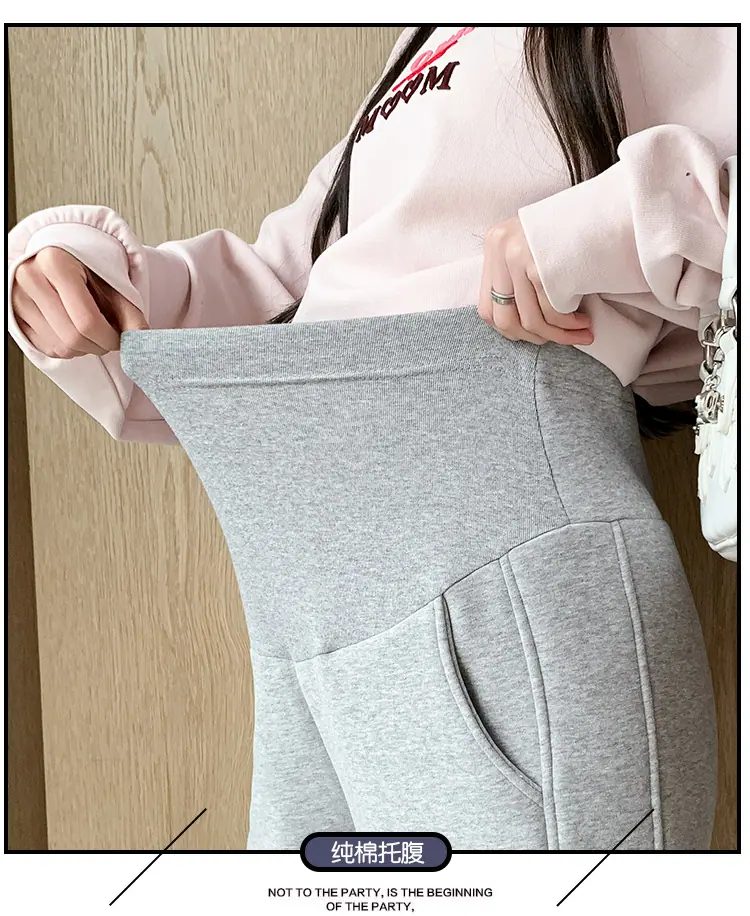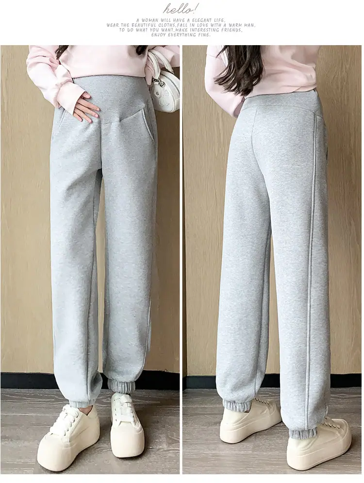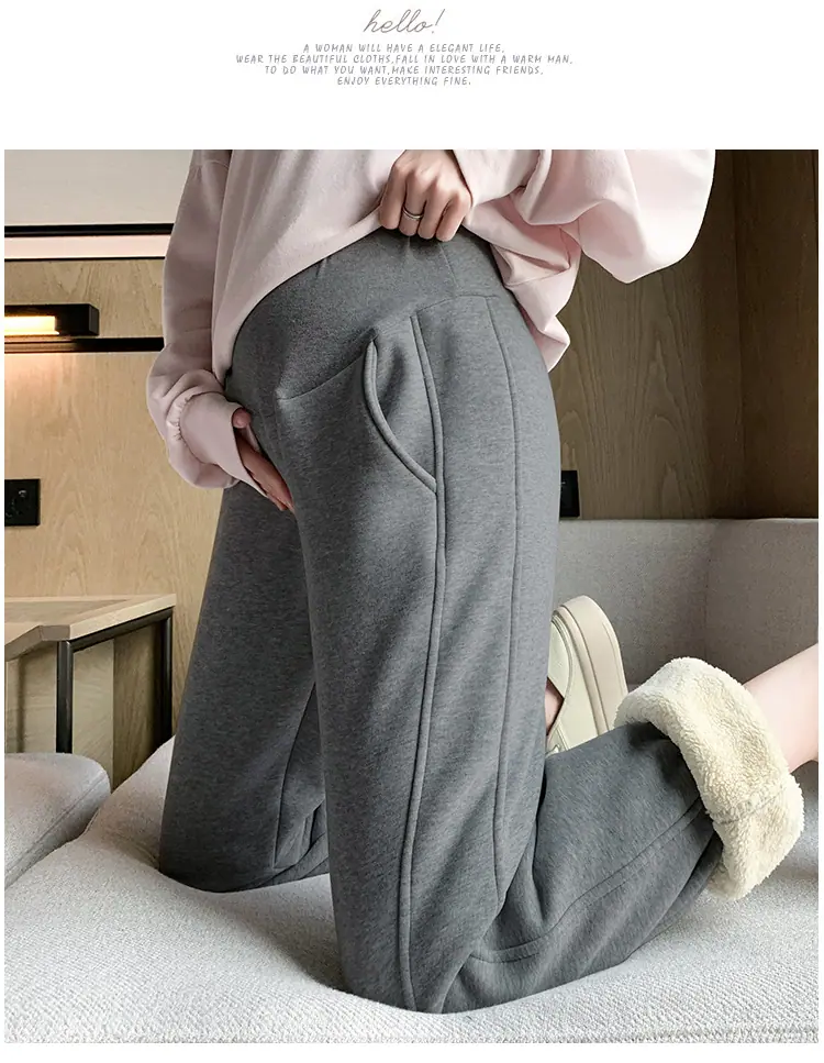 Leggings de Inverno para Gestantes Forradas com Lã de Cordeiro, Calças de Algodão Quentes Espessas, Calças de Maternidade de Inverno, Roupa Exterior de Outono e Inverno