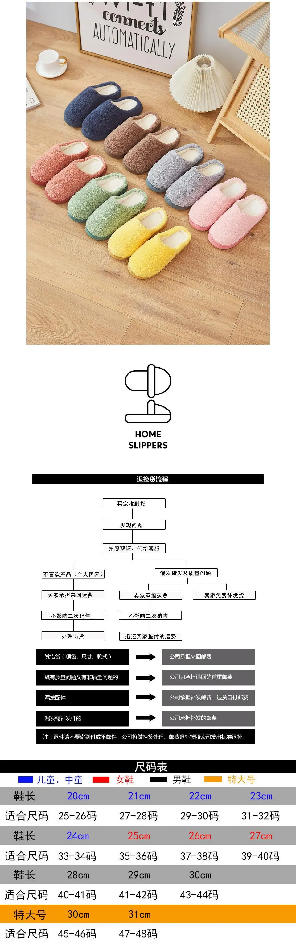 Sapatos Pós-parto Outono Inverno Chinelos de Algodão Femininos Cobertos no Calcanhar Cor Sólida Quentes para Casa Chinelos de Pelúcia Masculinos Casal Interno Sola Grossa Antiderrapante