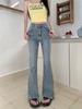 Talla grande Vintage Casual Jeans Lavados para Mujer Otoño Cintura Alta Adelgazantes Micro-pantalones chica gordita Pantalones Rectos Americanos