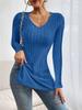 Amazon outono e inverno cor sólida plus size feminino outono e inverno top decote em V manga comprida camiseta canelada escovada