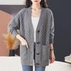 25 Cardigan Tricot Meio Comprimento Feminino Novo Decote V Tricot Jacquard Jaqueta Tricot Cor Pura Tamanho Plus Roupa Exterior Tricot