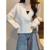 2025 Novo Top Suéter Curto de Gola Cor Sólida Feminino Primavera e Outono Slim Tricotado Cardigan Top Outono Preguiçoso