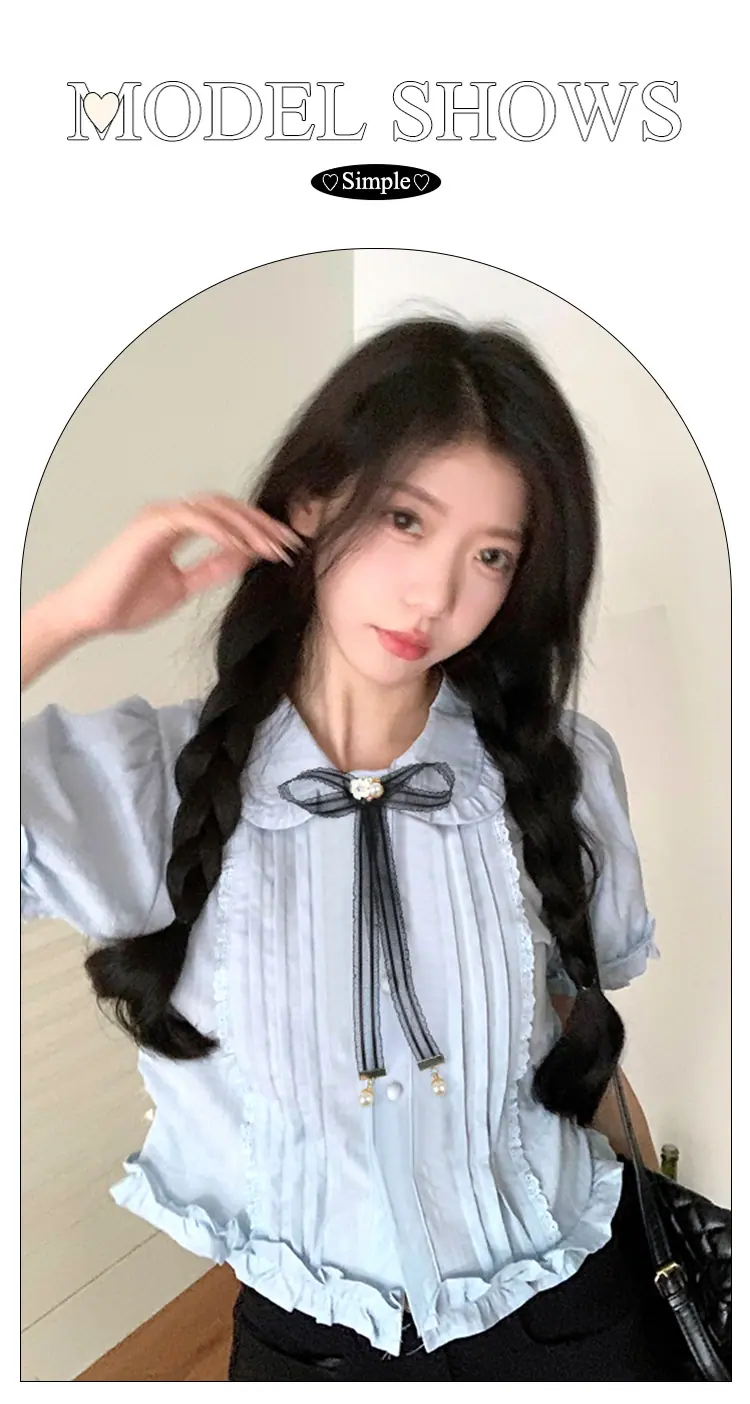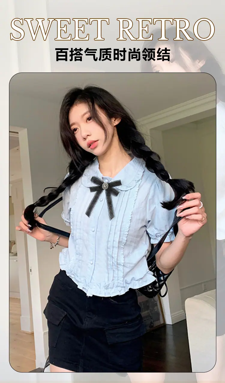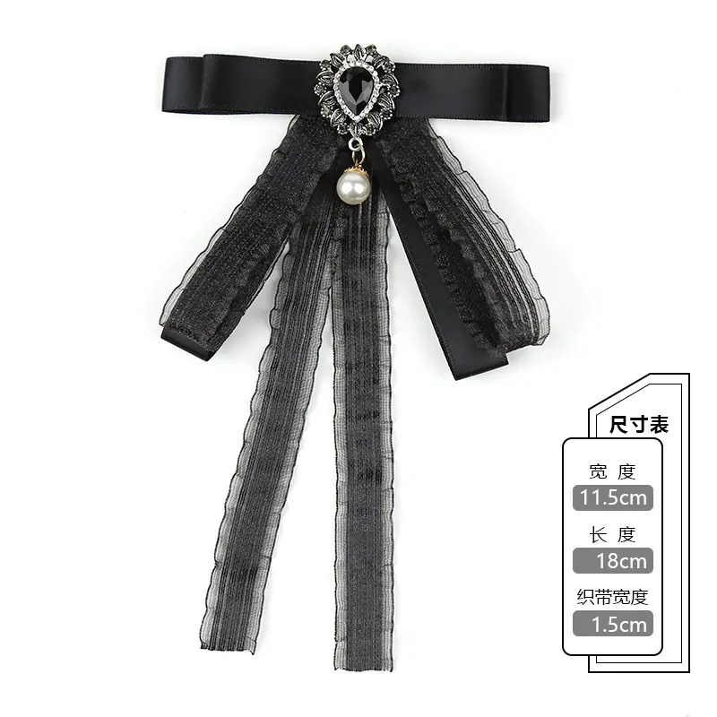 Camisa gravata borboleta feminina decorativa renda preta fita retrô commuter chic camisa uniforme escolar foto de formatura broche acessórios