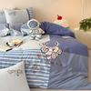 Travesseiro Grátis Estilo Menino Desenho Algodão Escovado Conjunto de Quatro Peças Bordado Astronauta Capa de Colcha Espessa 1.2m Roupa de Cama Azul